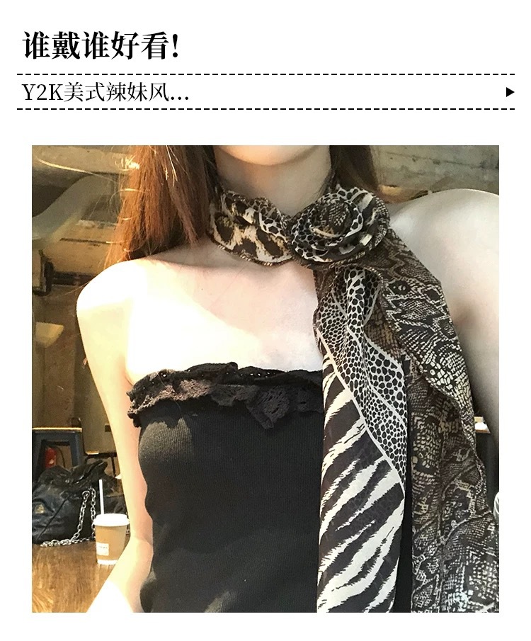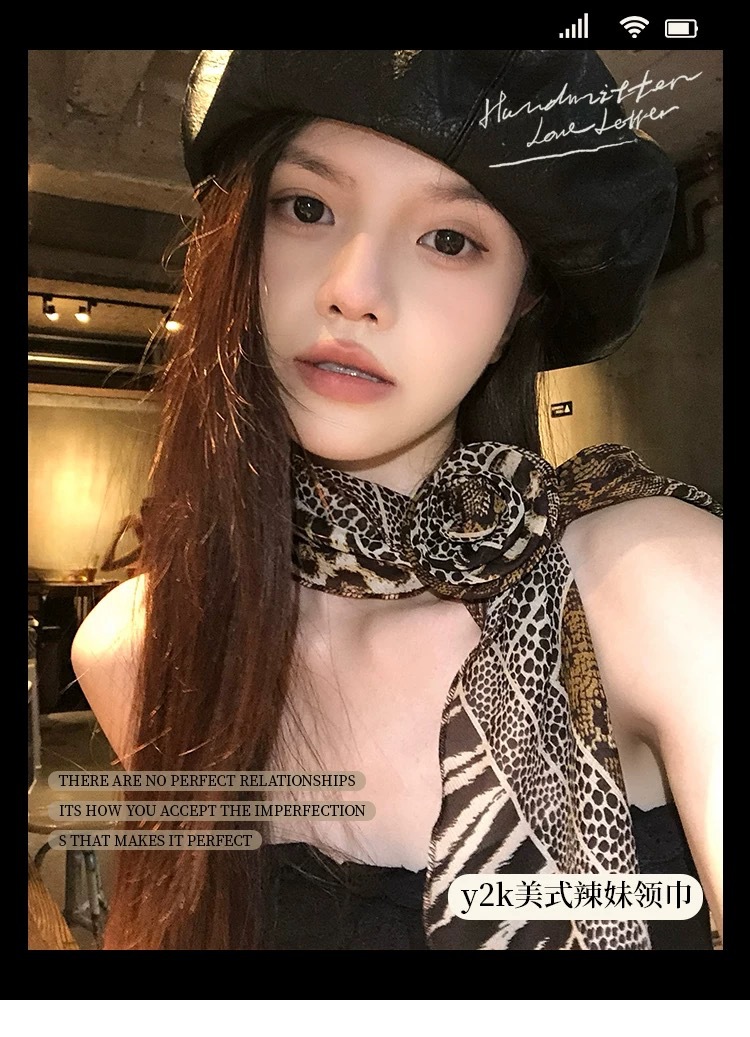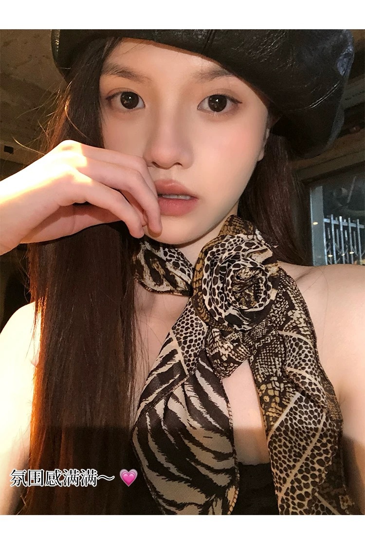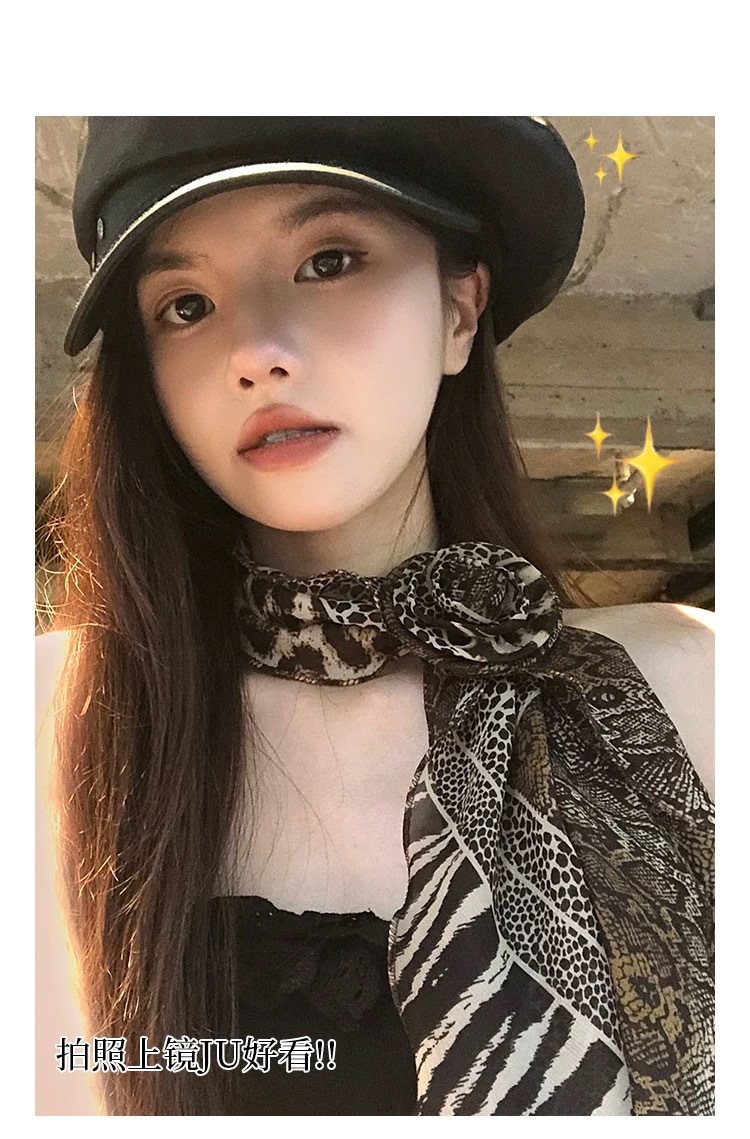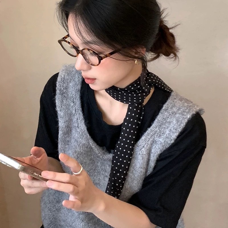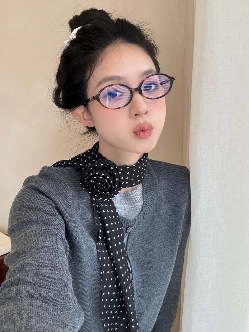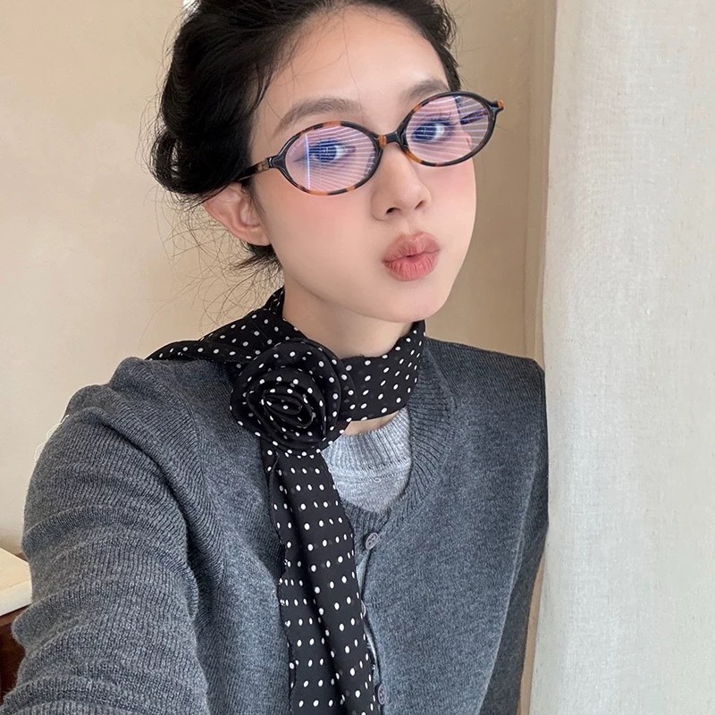 긴 블랙 웨이브 도트 스카프 꽃 덕빌 클립 여성용 로즈 스카프 리본 액세서리 하이 엔드 레트로 헤어 액세서리스토어 가기