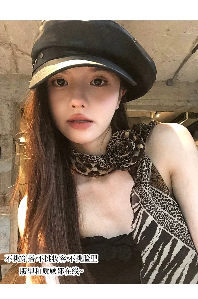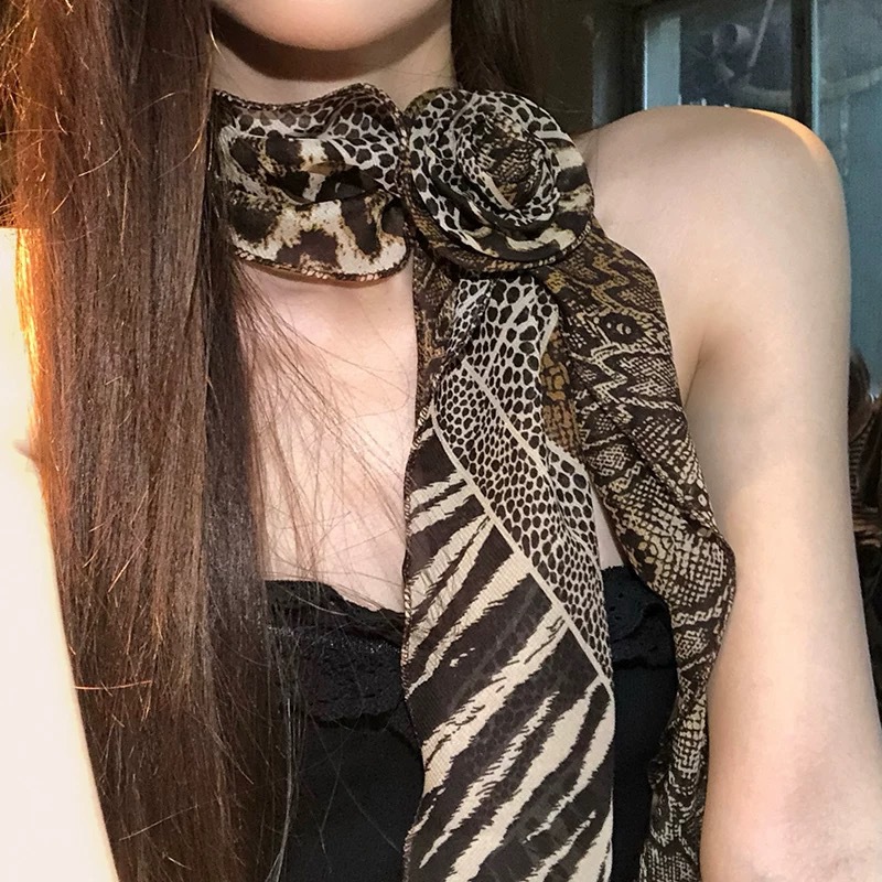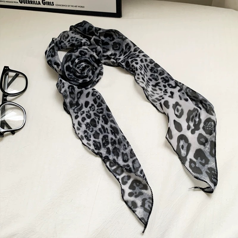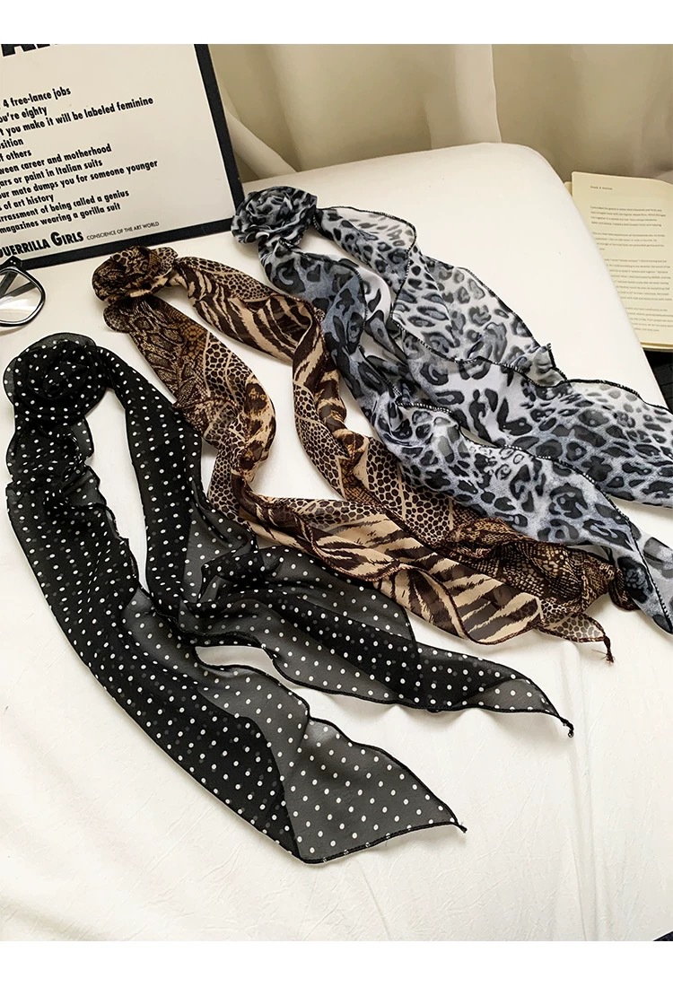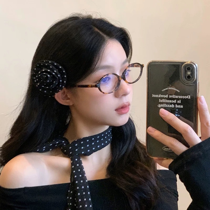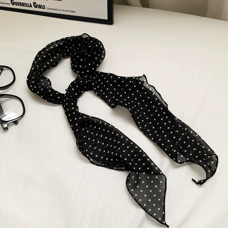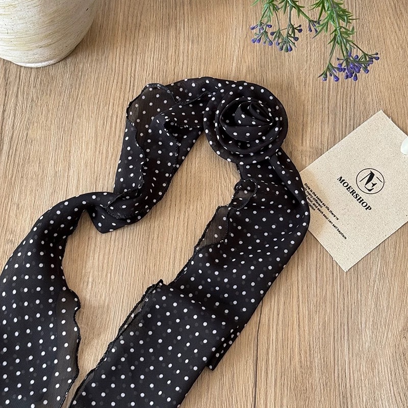 긴 블랙 웨이브 도트 스카프 꽃 덕빌 클립 여성용 로즈 스카프 리본 액세서리 하이 엔드 레트로 헤어 액세서리