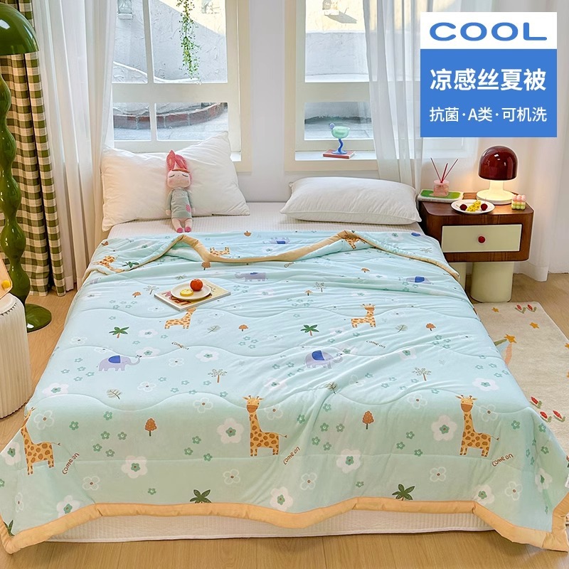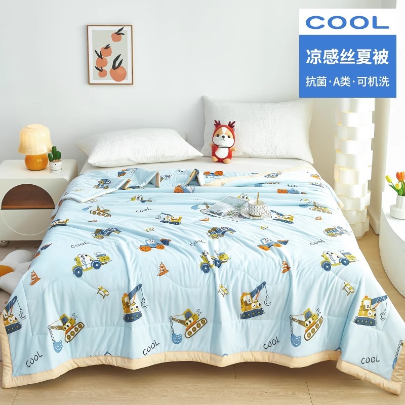 어린이 여름 이불, 에어컨 이불, 아이스 실크 이불, 유치원 여름 낮잠용 시원한 실크 소형 이불, 만화 캐릭터 여름 이불