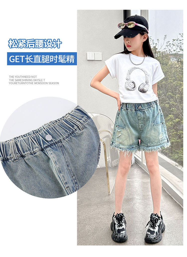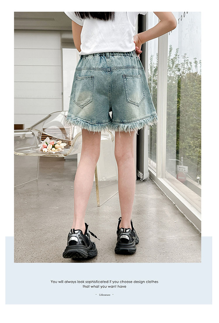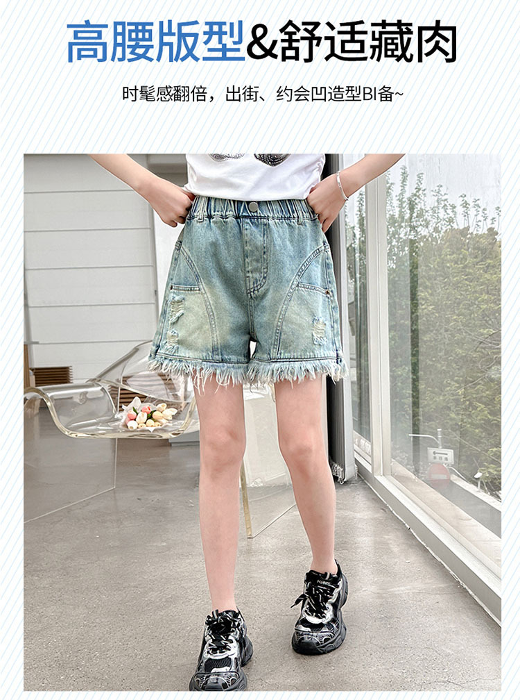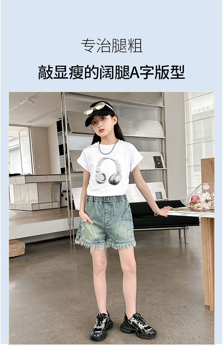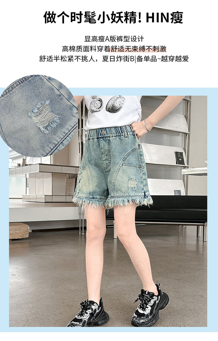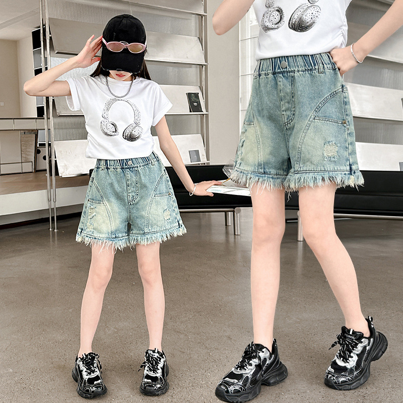 아동복 소녀 여름 데님 반바지 2025 년 봄과 여름 어린이 느슨한 중대형 어린이 데님 반바지스토어 가기