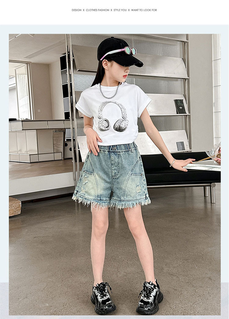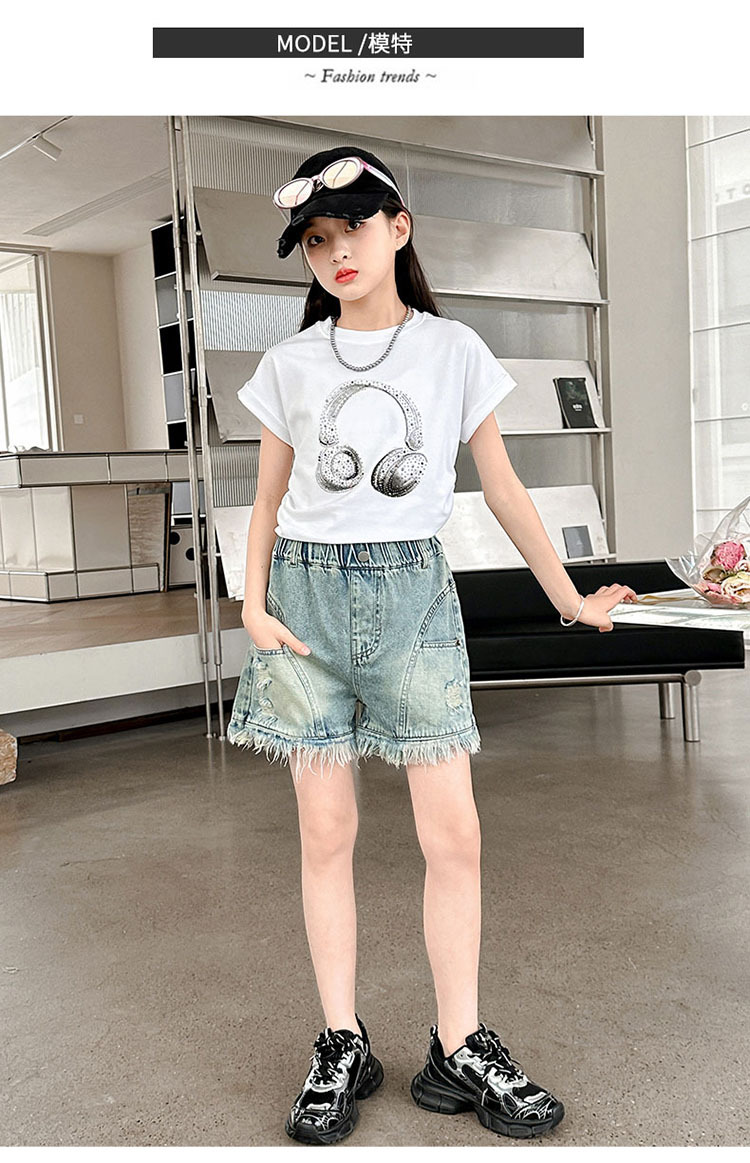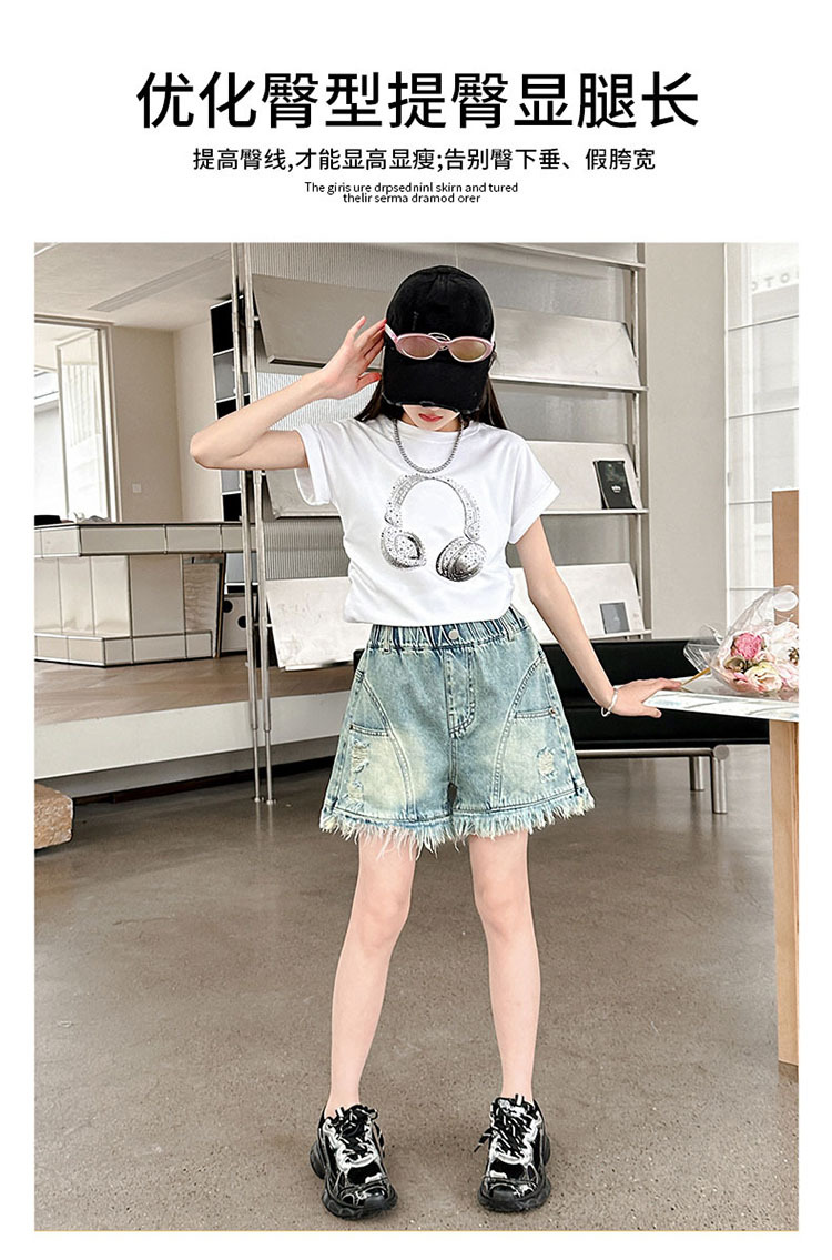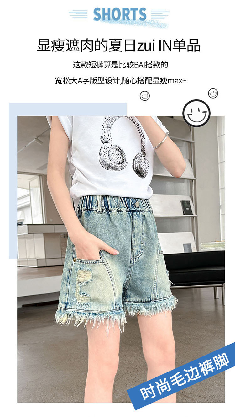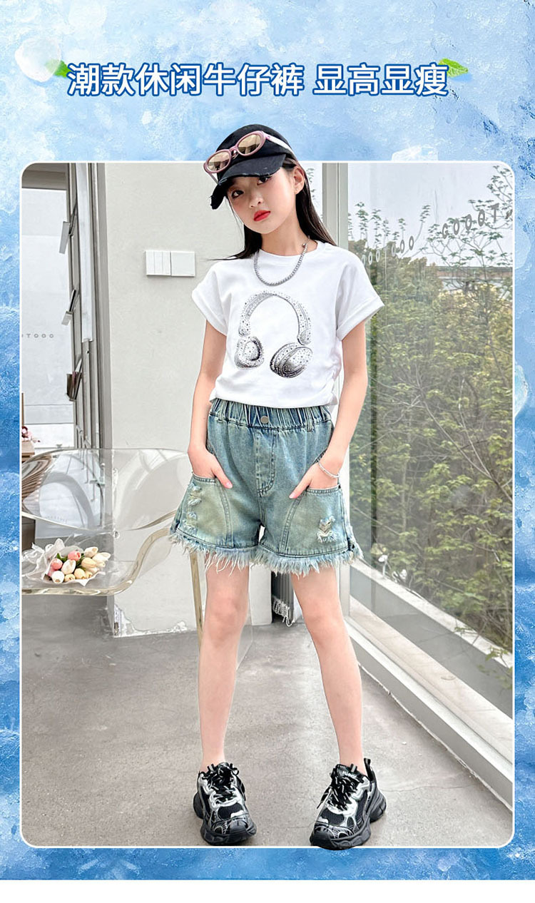 아동복 소녀 여름 데님 반바지 2025 년 봄과 여름 어린이 느슨한 중대형 어린이 데님 반바지스토어 가기