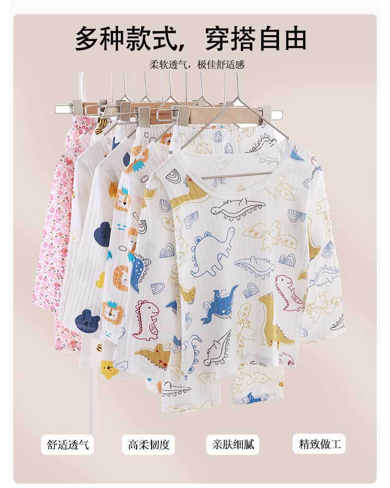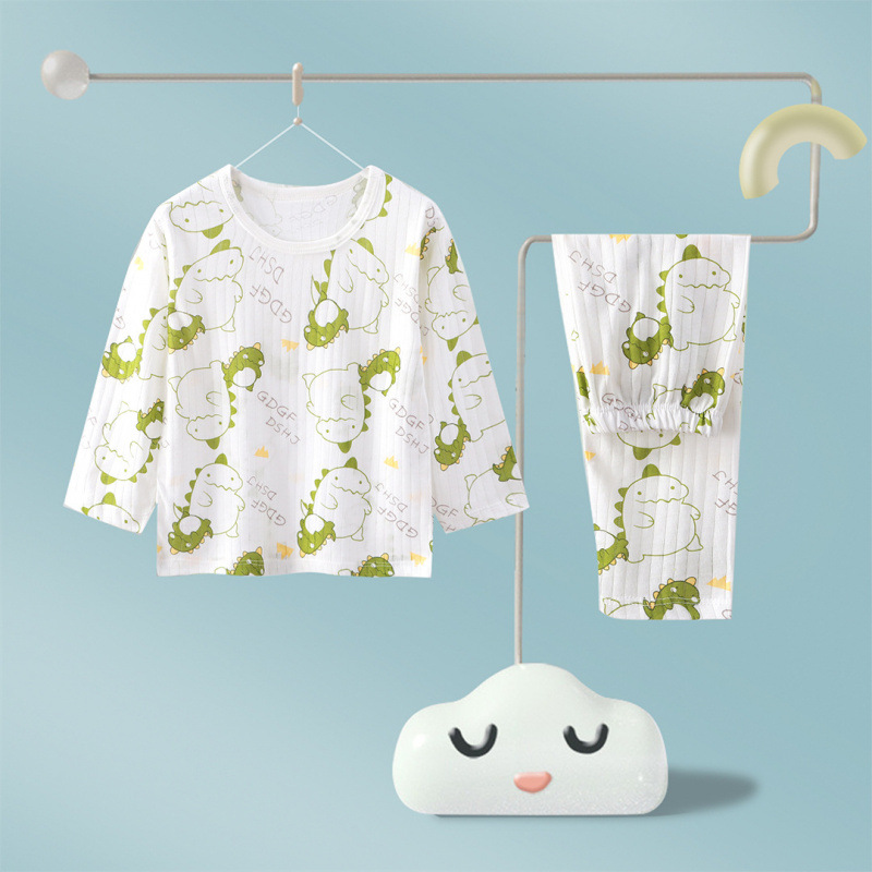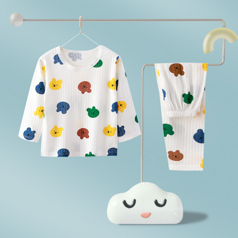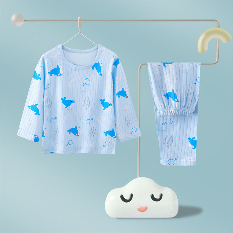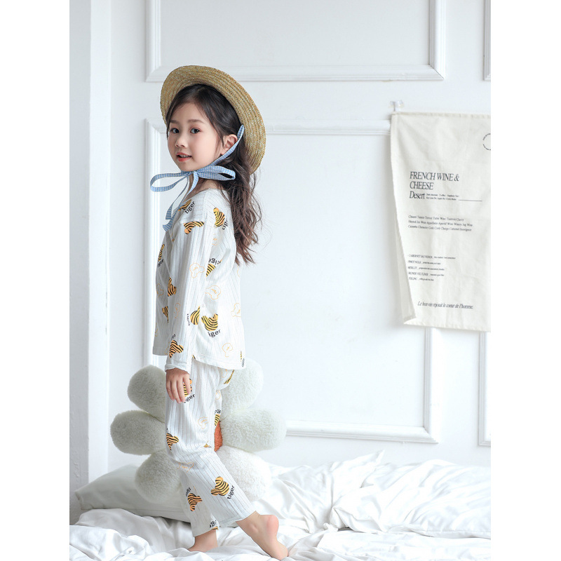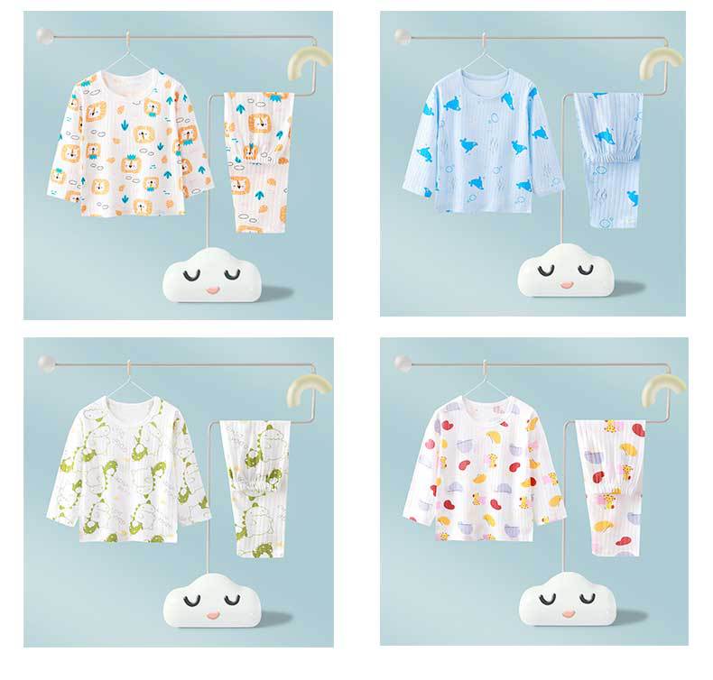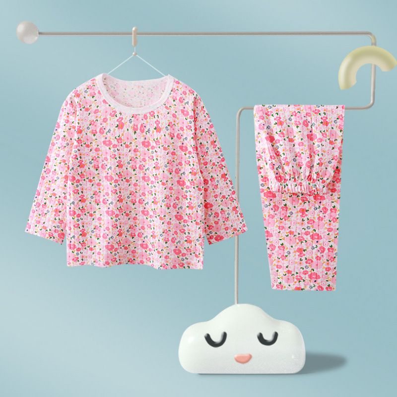 어린이 순면 홈 의류 뼈없는 아기 잠옷 긴 소매 세트 여름 얇은 소녀 에어컨 옷 아기 소년 잠옷스토어 가기