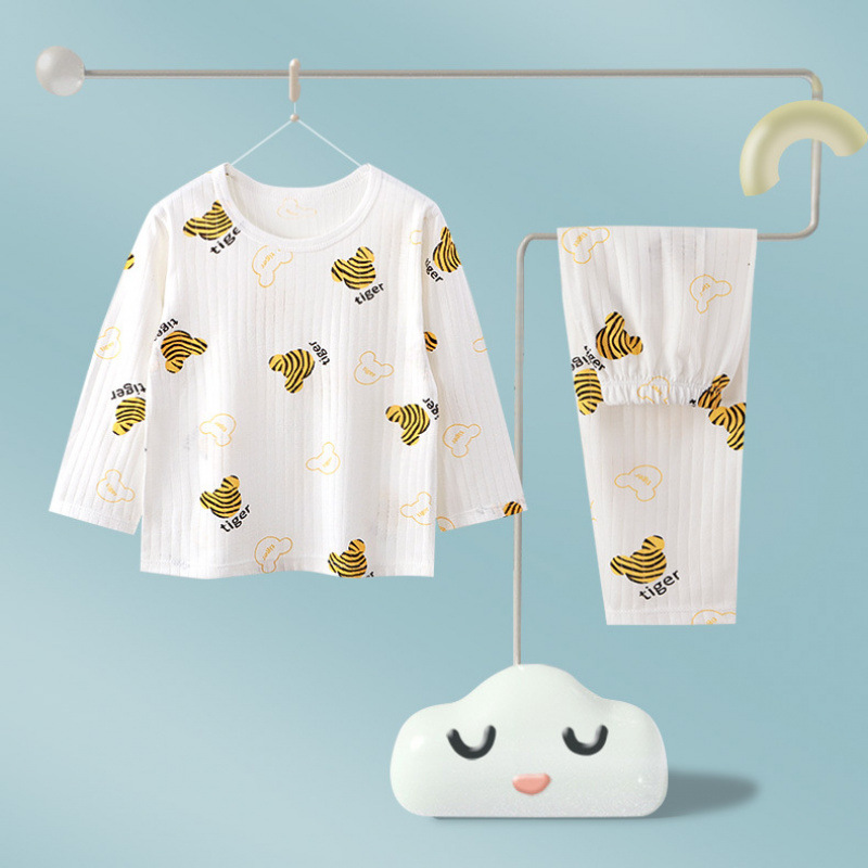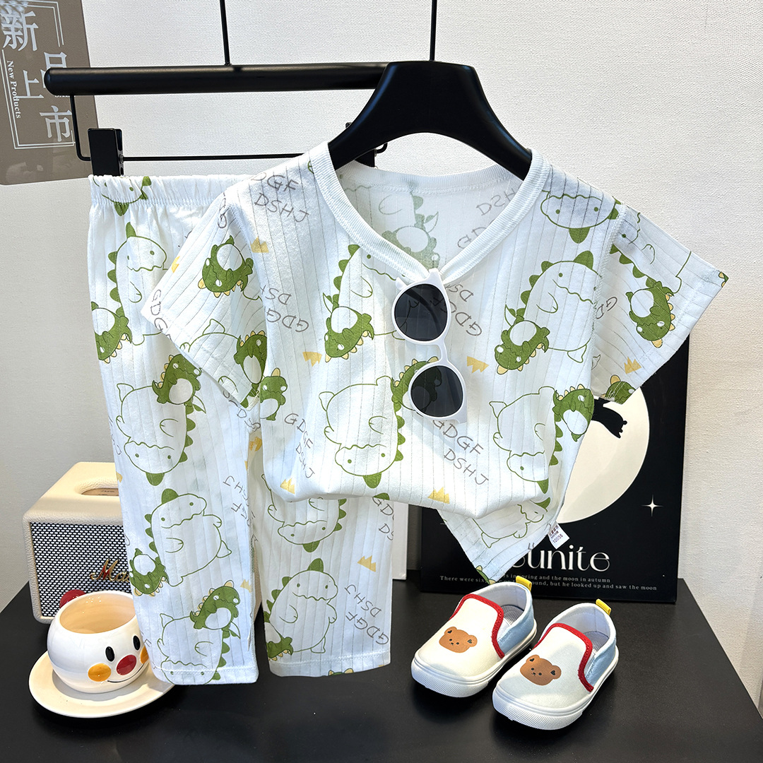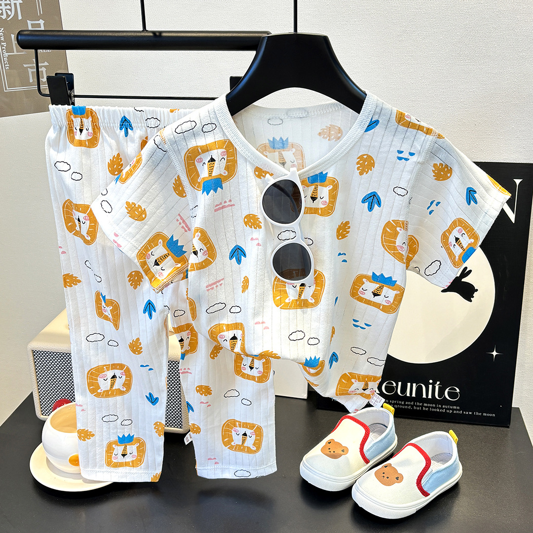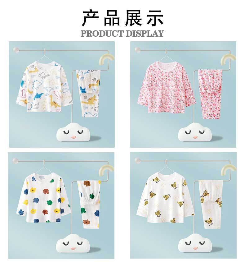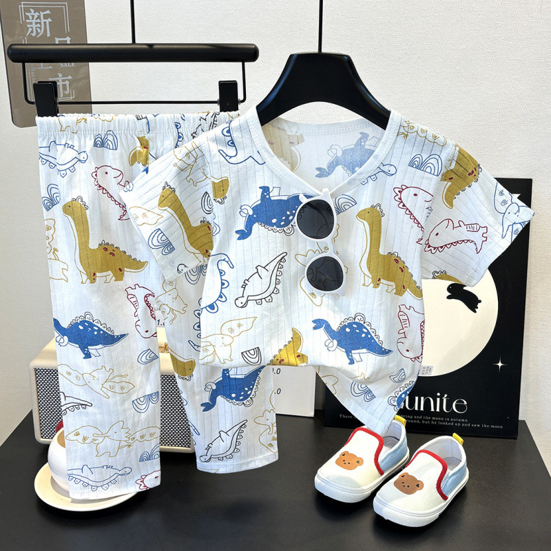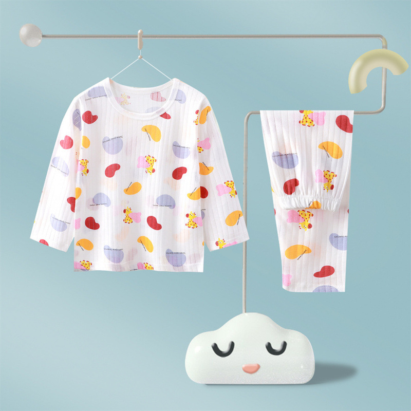 어린이 순면 홈 의류 뼈없는 아기 잠옷 긴 소매 세트 여름 얇은 소녀 에어컨 옷 아기 소년 잠옷스토어 가기