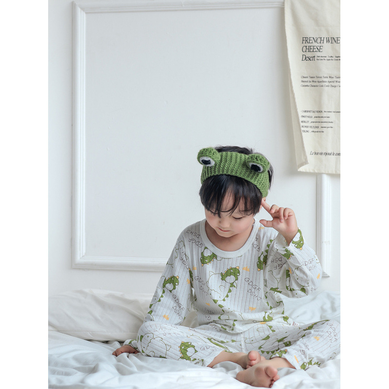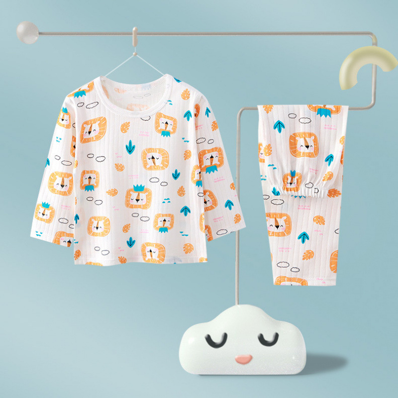 어린이 순면 홈 의류 뼈없는 아기 잠옷 긴 소매 세트 여름 얇은 소녀 에어컨 옷 아기 소년 잠옷