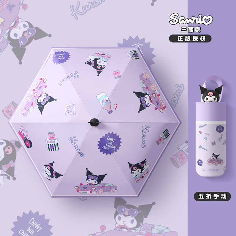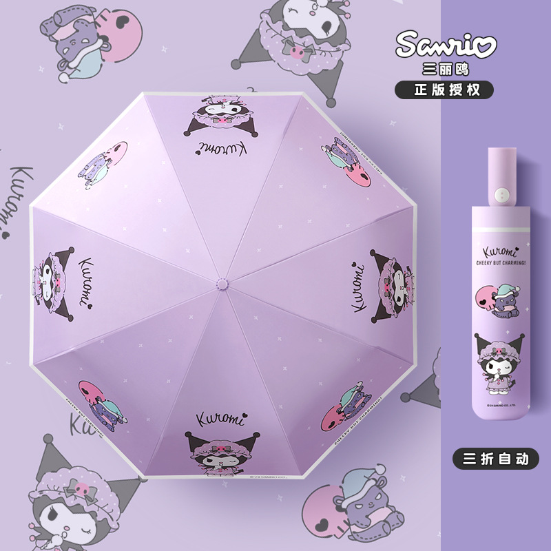 Sanrio 정품 Kulomi 미니 자동 휴대용 선물 우산 인쇄 로고 선 스크린 작은 양산 우산스토어 가기