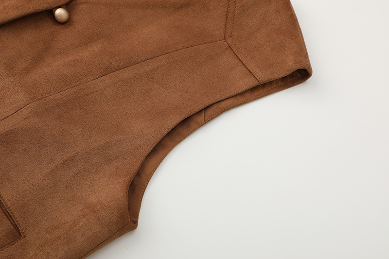 다크 브라운 스웨이드 양복 조끼 여성 가을 새로운 패션 하이 엔드 V 넥 슬림 스택 양복 조끼스토어 가기