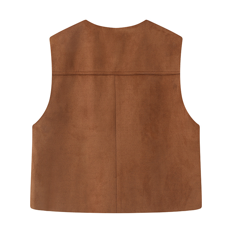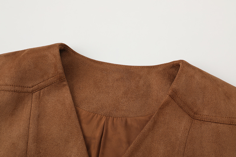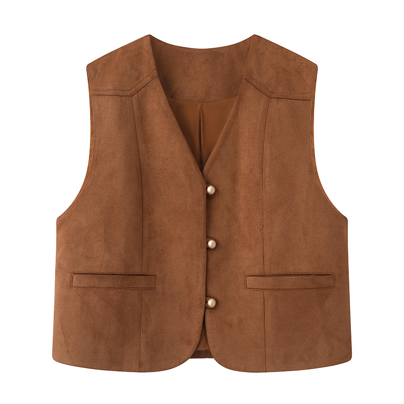 다크 브라운 스웨이드 양복 조끼 여성 가을 새로운 패션 하이 엔드 V 넥 슬림 스택 양복 조끼