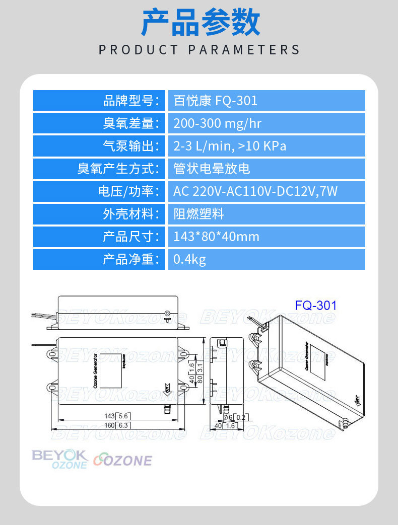 Baiyuekang FQ-301 정수기 식기 세척기 300 mg/h 통합 오존 발전기 모듈스토어 가기