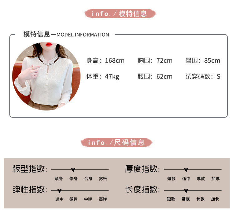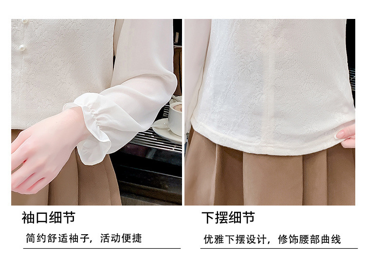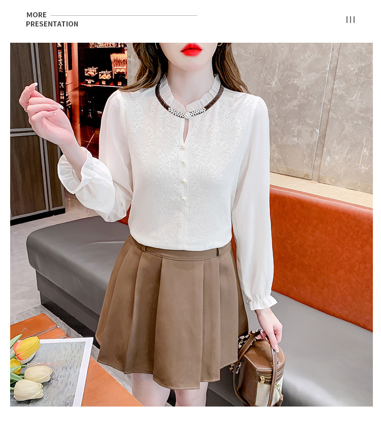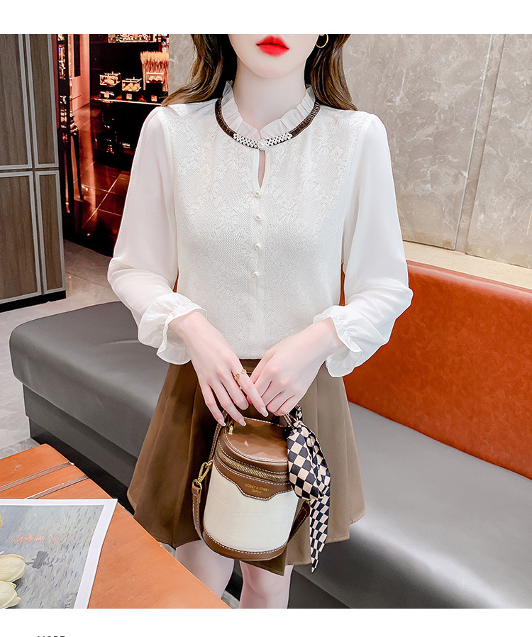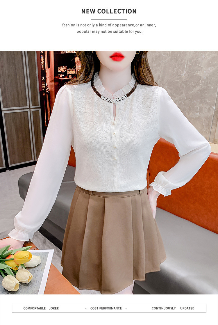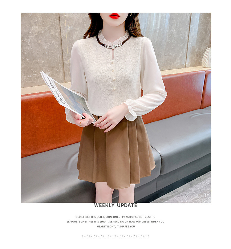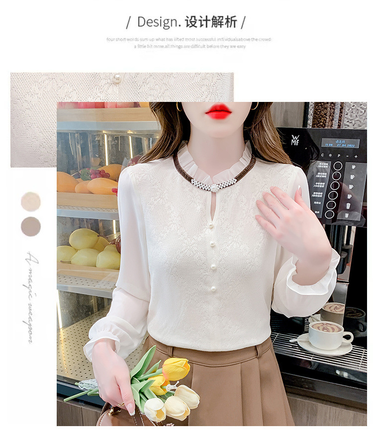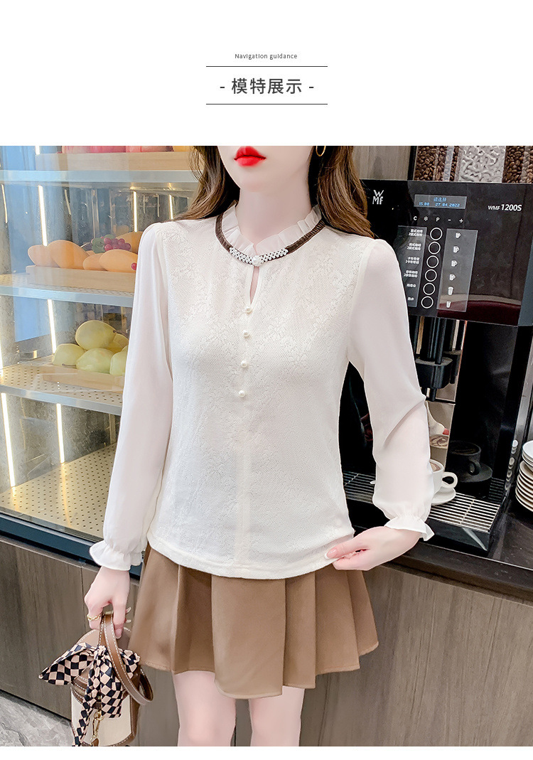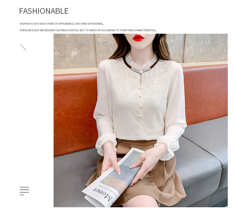 얇은 프랑스 스타일 우아한 봄과 가을 새로운 스타일 셔츠 세련된 패션 최고 연령 감소 긴 소매 레이스 셔츠 쉬폰 셔츠 여성용 트렌디스토어 가기