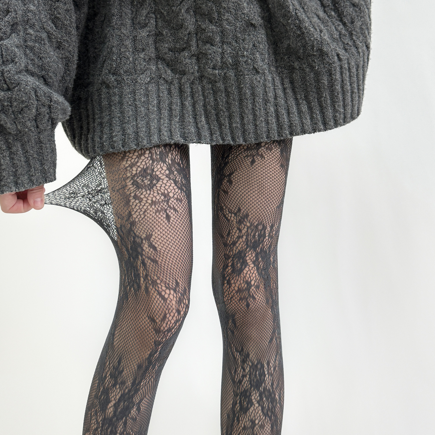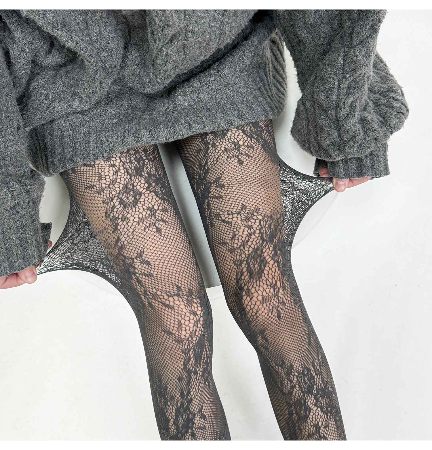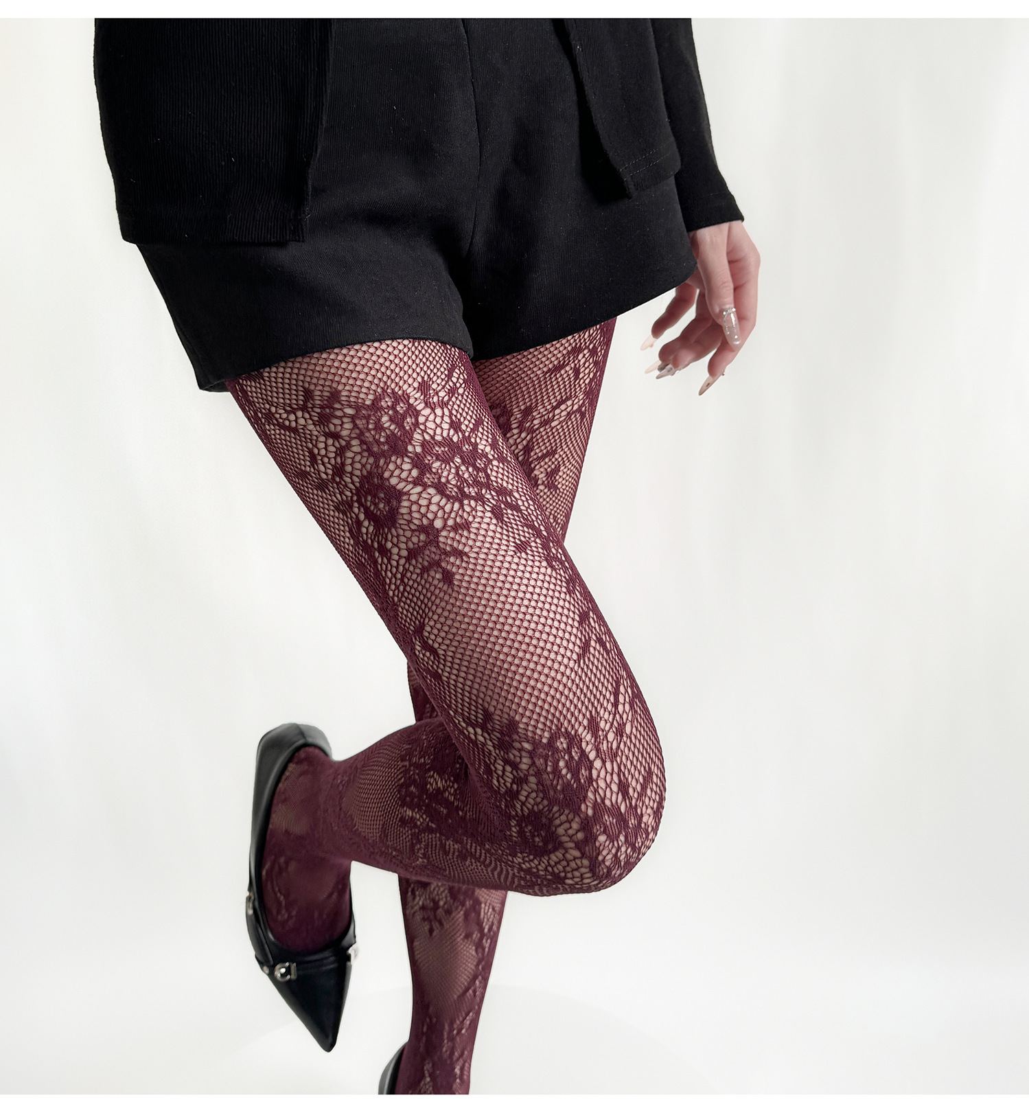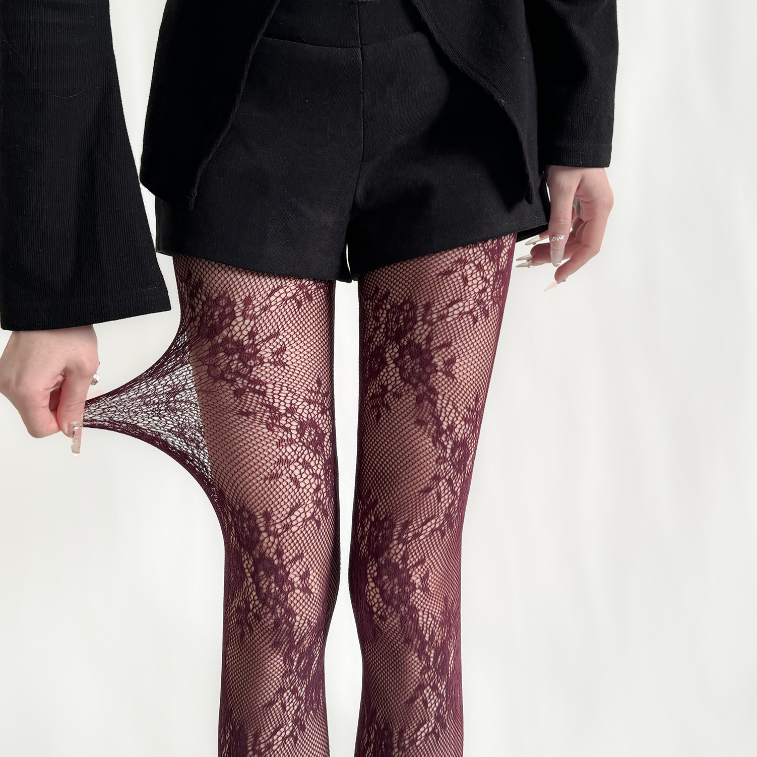 빈티지 할로우 플라워 스타킹 여성 Y2K 스파이스 피스넷 스타킹 안티 훅 섹시 베이스 레이스 스타킹 블랙
