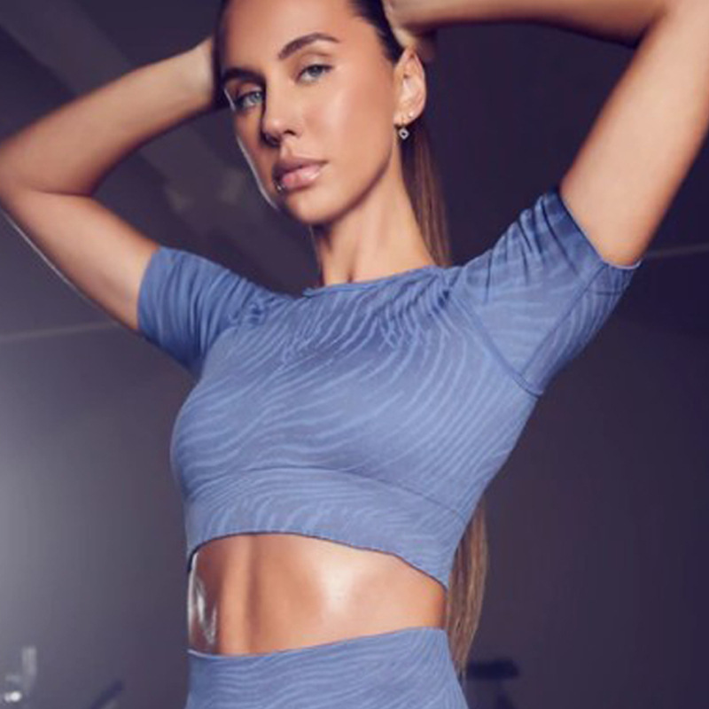 나프탈렌 여름 새로운 유럽과 미국의 어두운 패턴 원활한 스포츠 짧은 소매 여성용 스트랩 브라 요가 바지 높은 허리 반바지