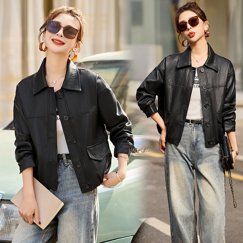여자 가죽 코트 여자 2025 봄과 가을 새로운 우아한 올 매치 바이커 PU 가죽 자켓 XG9969스토어 가기