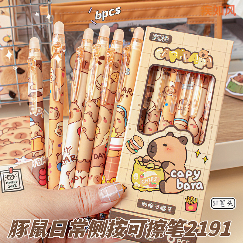 귀여운 젤 펜, 열 감지 지울 수 있는 카피발라 학생용 만화 펜, 쉽게 지워지는 펜, 멋진 디자인, 도매스토어 가기