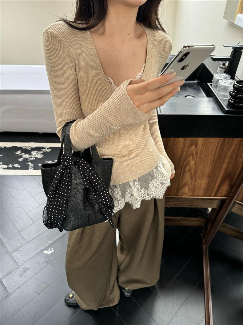 1085 # 레이온 소재의 V넥 레이스 슬립탑 여성용 레이어드 메쉬 스플라이싱 슬립웨어, 여유로운 스타일