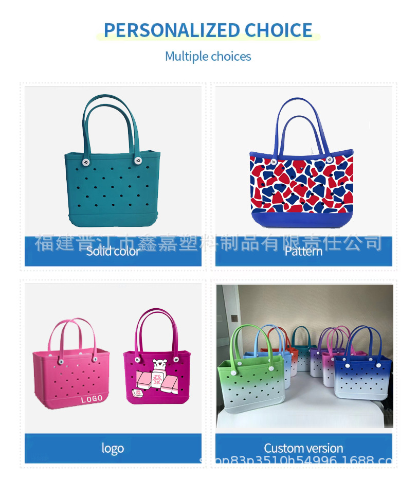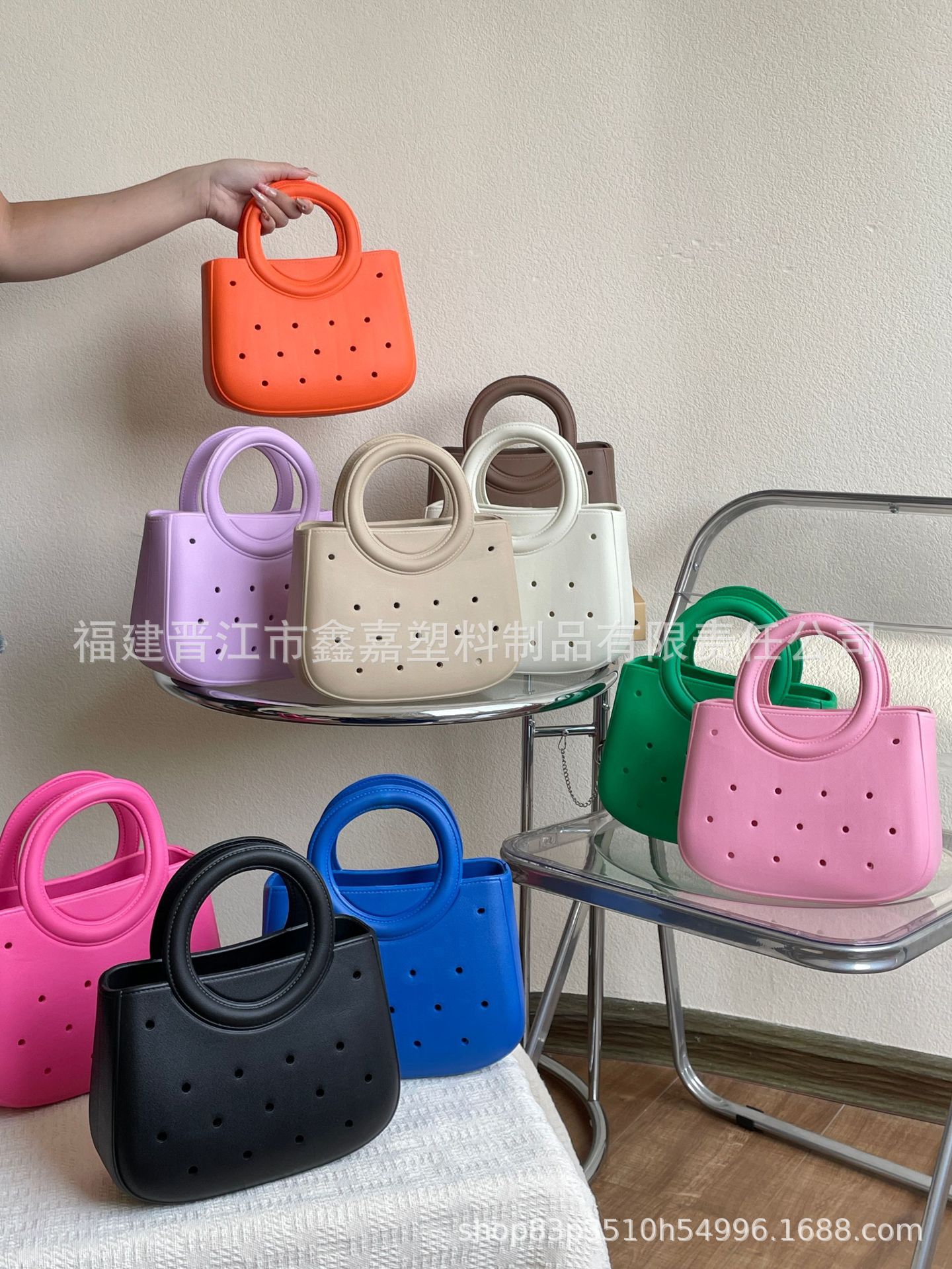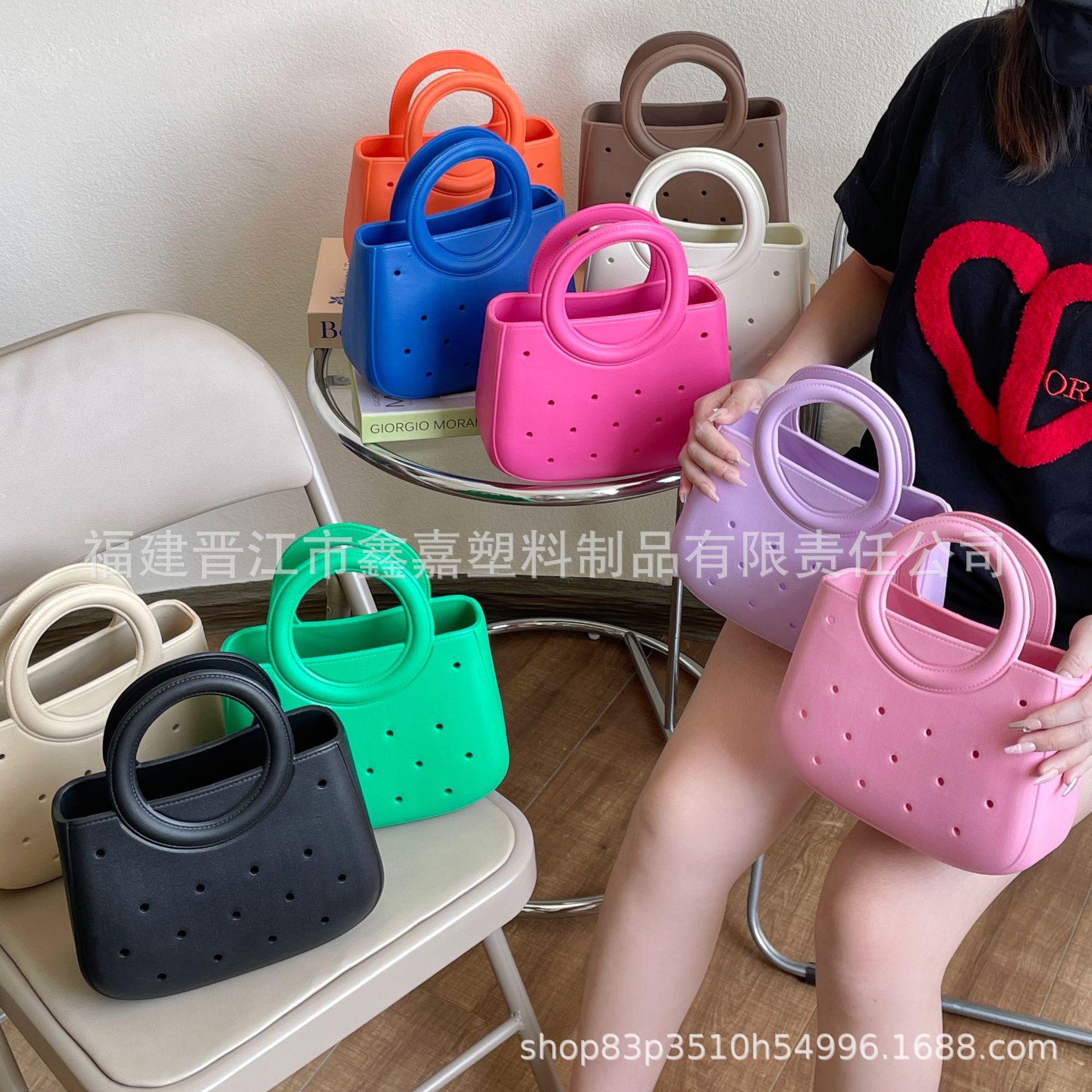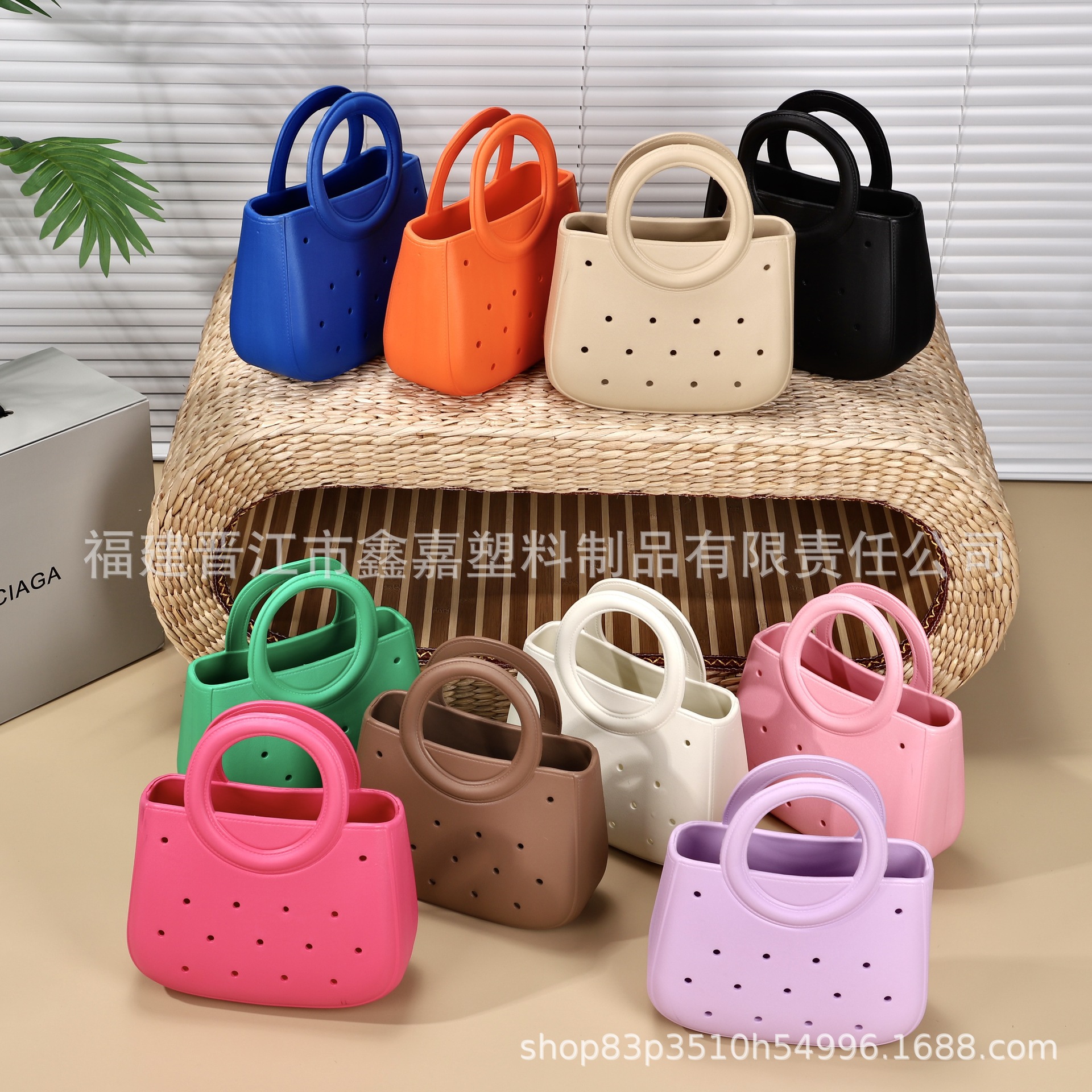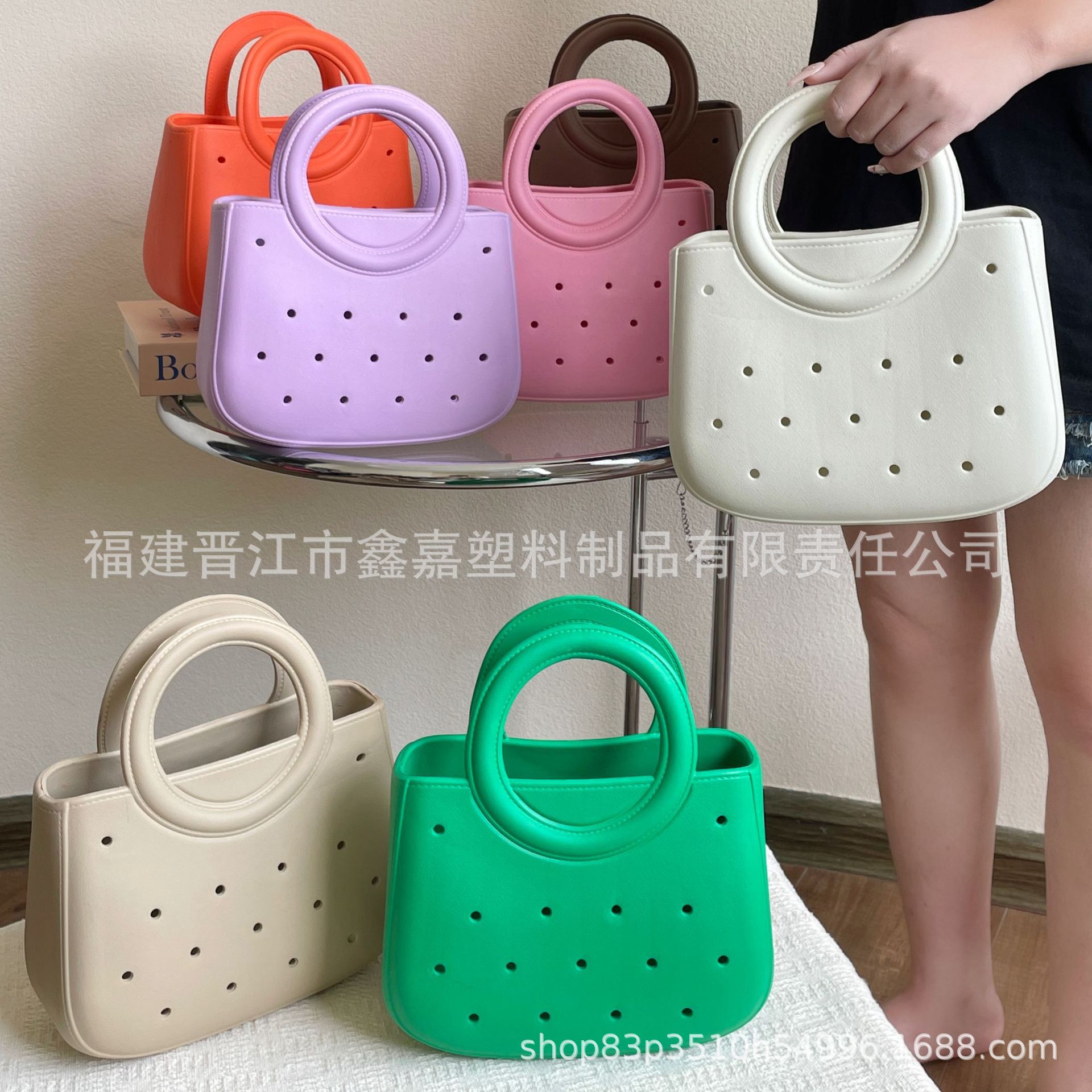 공장 맞춤형 EVA 솔리드 컬러 DIY 홀 백 방수 보관 가방 bogg 인기 패션 중공 여성용 핸드백