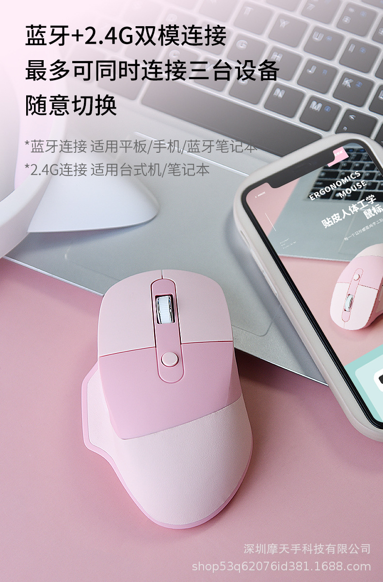 모피이 모티브 듀얼 모드 마우스 인체공학적 무선 블루투스 가죽 공장 사무실 인체공학적 마우스