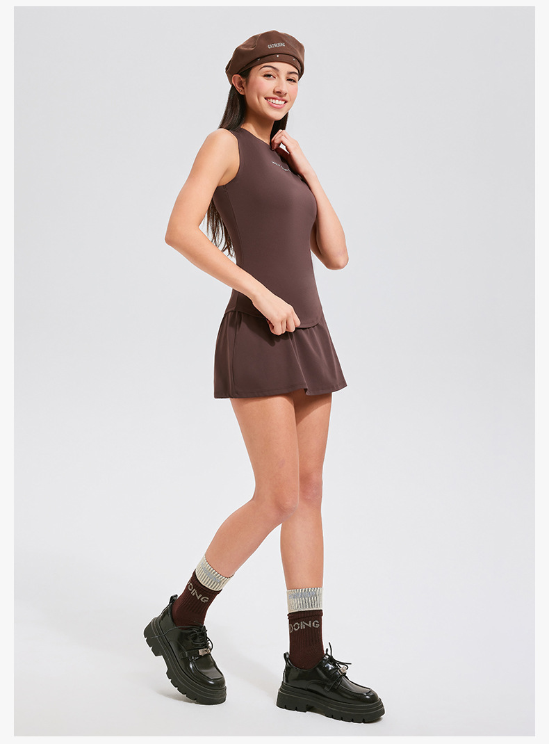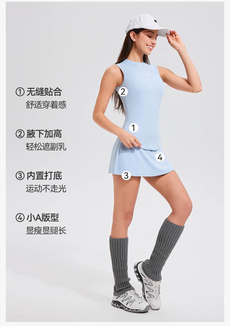 테니스 의류 스포츠 세트 여자 봄과 여름 민소매 슬리밍 하이 엔드 센스 테니스 스커트 캐주얼 골프 피트니스 의류스토어 가기