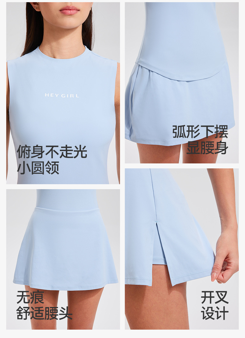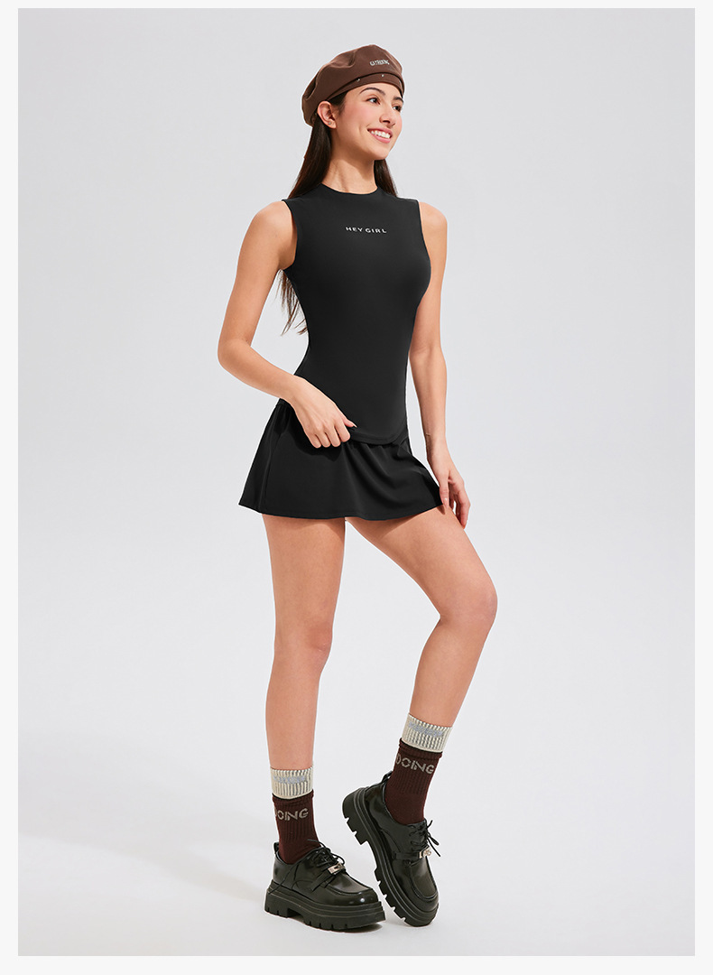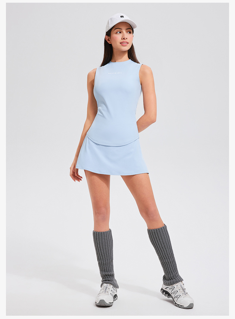 테니스 의류 스포츠 세트 여자 봄과 여름 민소매 슬리밍 하이 엔드 센스 테니스 스커트 캐주얼 골프 피트니스 의류