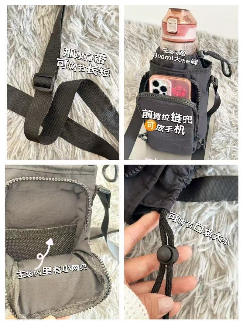 2025 새로운 야외 여행 물병 가방 휴대 전화 가방 크로스 바디 가방 남성과 여성 캐주얼 스포츠 휴대용 Drawstring 작은 가방