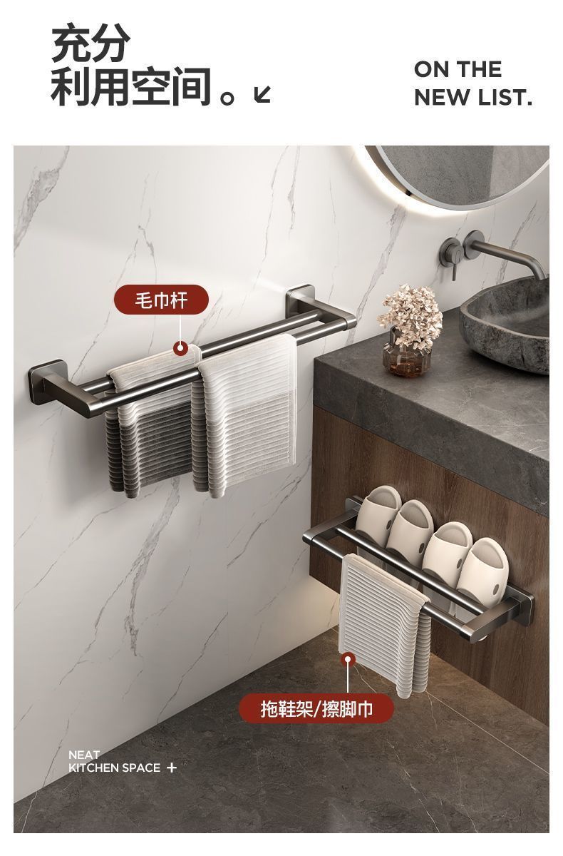 화장실 수건 랙 욕실 구멍이없는 저장 랙 타월 단극 화장실 보관 랙 주방 후크