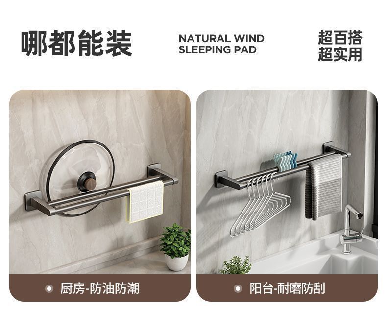 화장실 수건 랙 욕실 구멍이없는 저장 랙 타월 단극 화장실 보관 랙 주방 후크스토어 가기