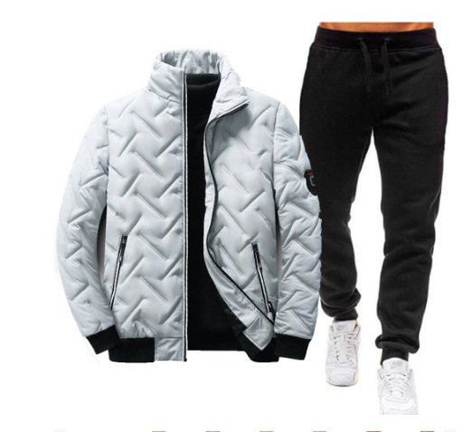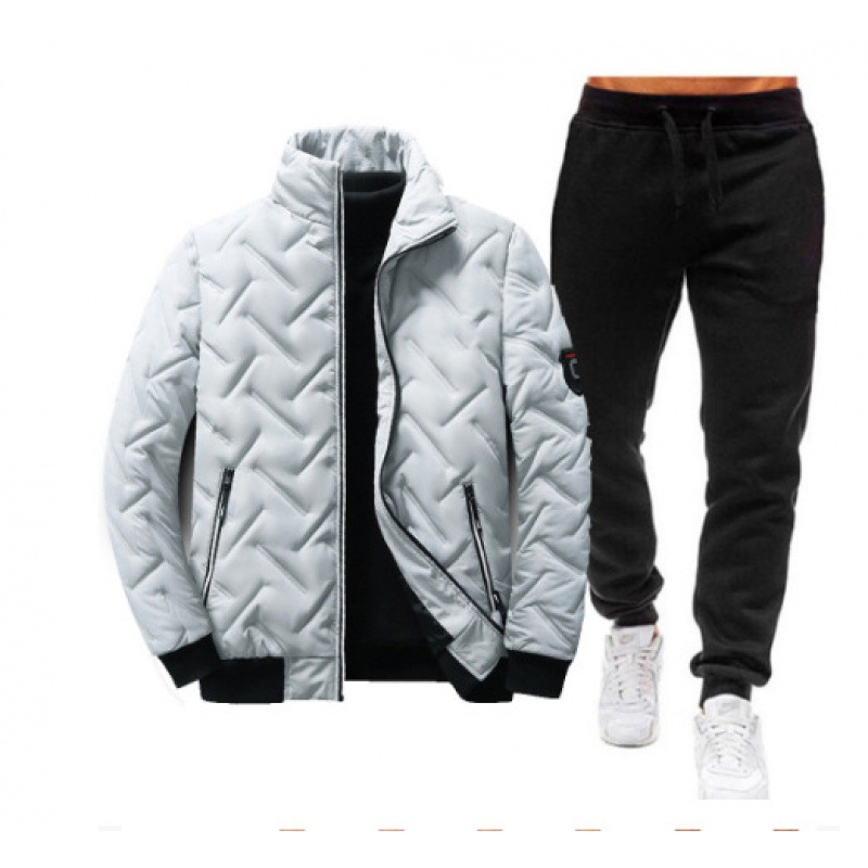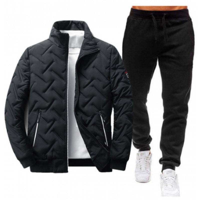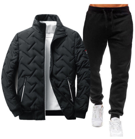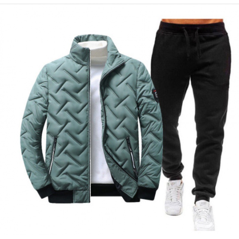 국경 간 남성용 칼라 코튼 패딩 재킷 바지 세트 겨울 두꺼운 따뜻한 코튼 패딩 재킷 다운 재킷 캐주얼 투피스 세트스토어 가기