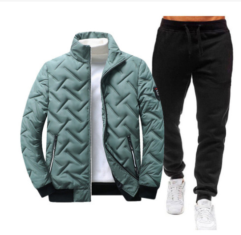 국경 간 남성용 칼라 코튼 패딩 재킷 바지 세트 겨울 두꺼운 따뜻한 코튼 패딩 재킷 다운 재킷 캐주얼 투피스 세트
