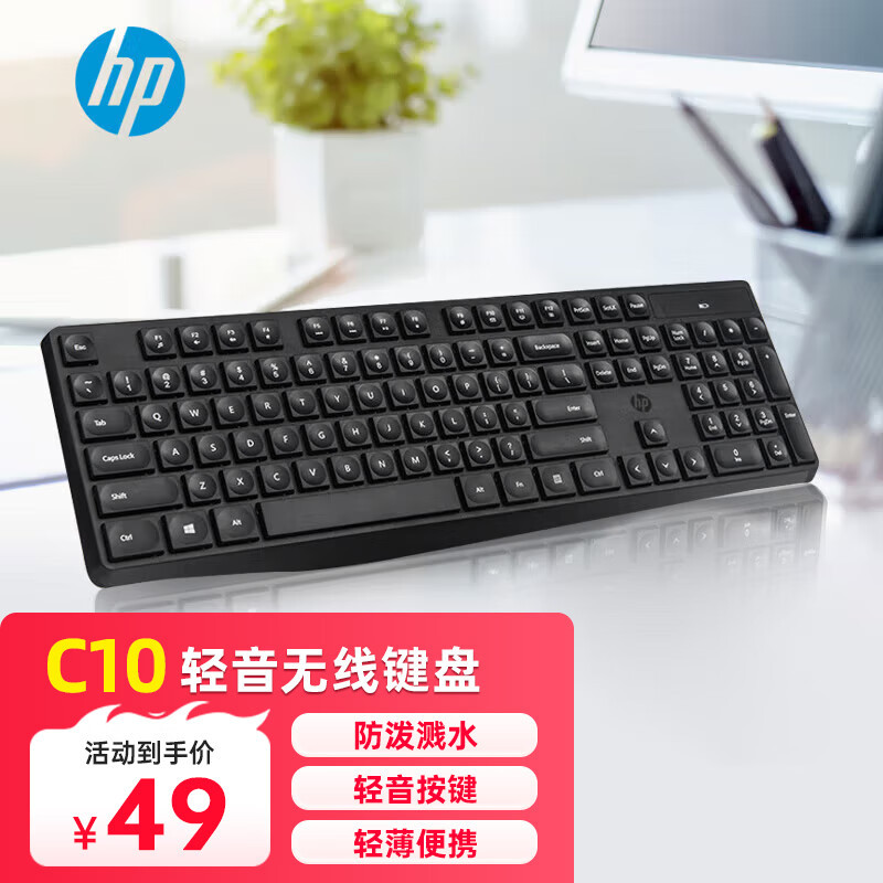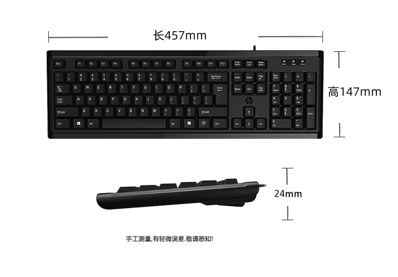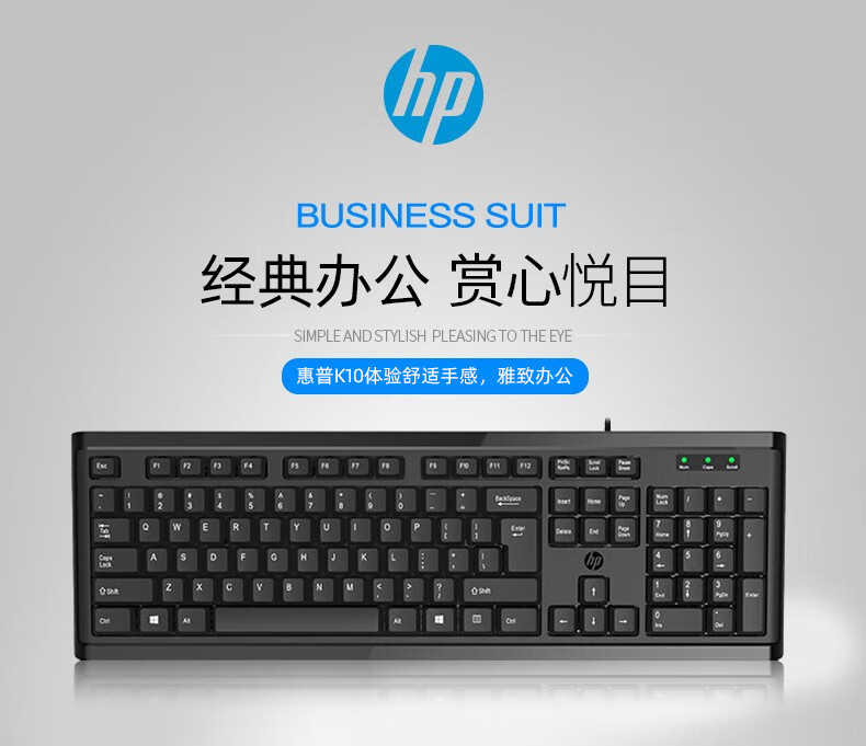 HP K10 유무선 사무용 단일 키보드 104키 내마모성 방수 인체공학적 느낌의 편안한 사무용 키보드