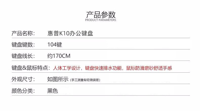 HP K10 유무선 사무용 단일 키보드 104키 내마모성 방수 인체공학적 느낌의 편안한 사무용 키보드스토어 가기
