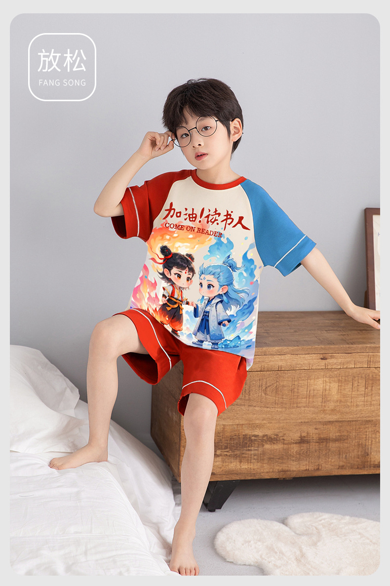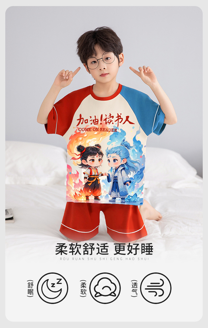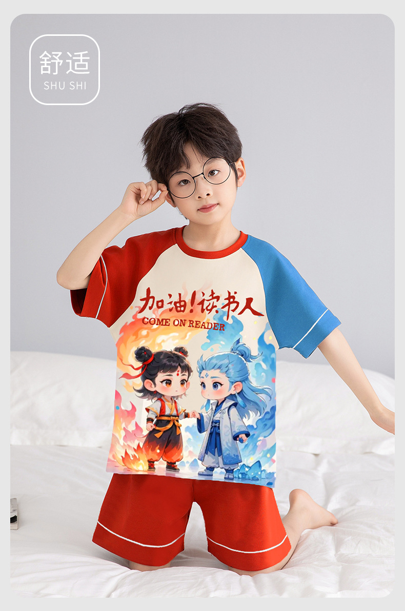 2025新款哪吒儿童睡衣男童夏季短袖薄款棉男孩大童青少年家居服