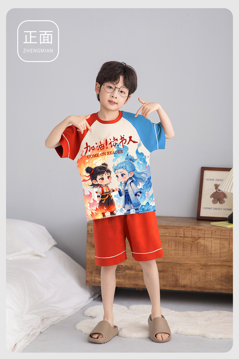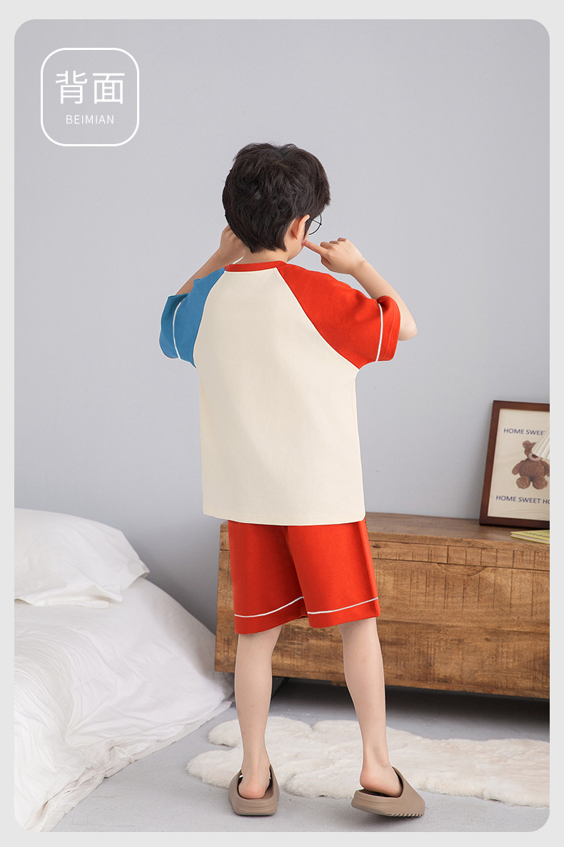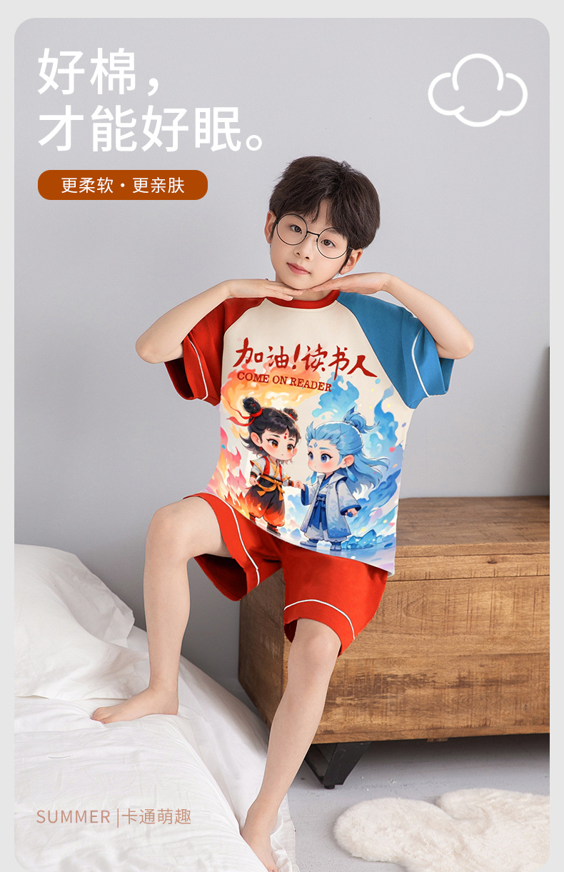 100% 면 네자 어린이 잠옷 소년의 여름 반팔 얇은 올면 소년의 큰 소년의 청소년 홈 옷스토어 가기