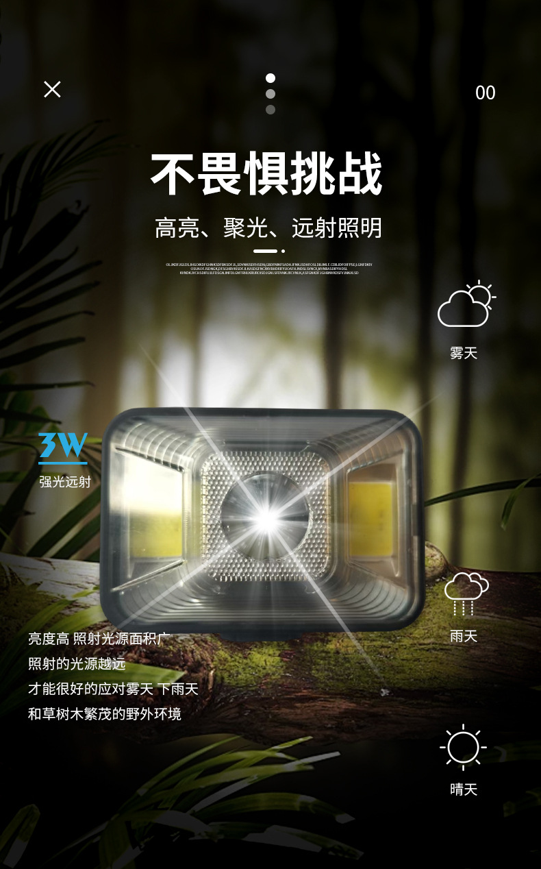 야외 가구 조명 내장 1000 mA 리튬 배터리, 강한 빛 3w 헤드 라이트 측면 조명 및 경고등스토어 가기