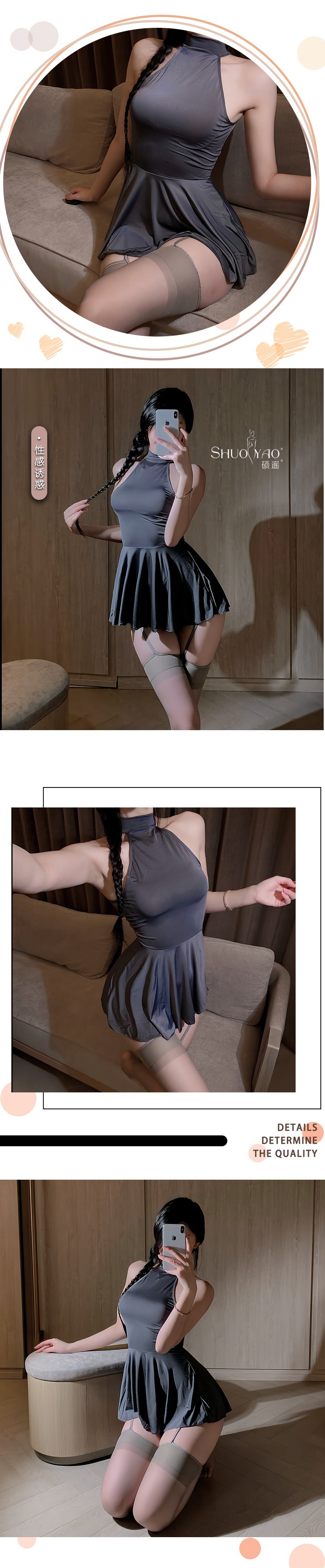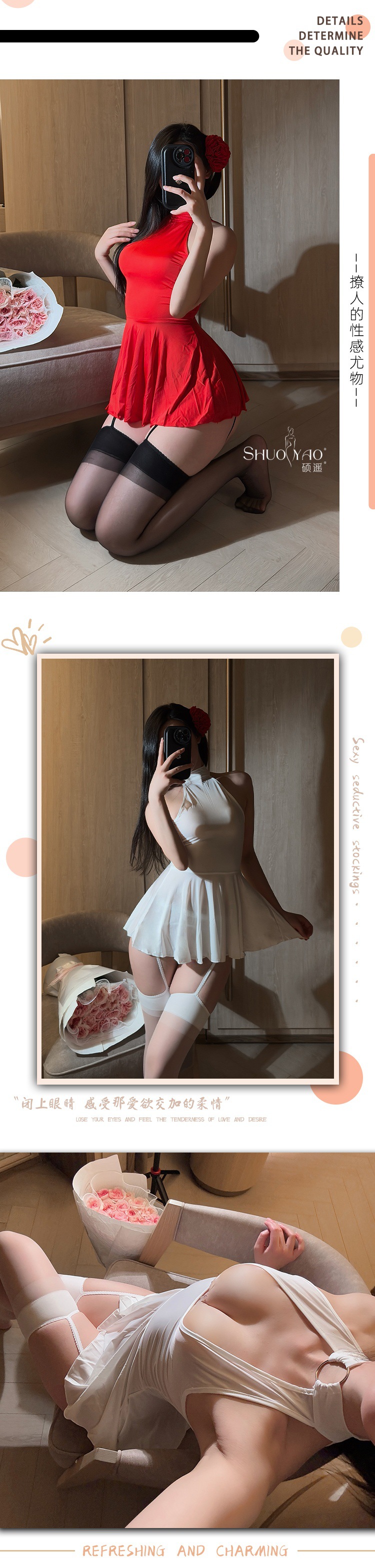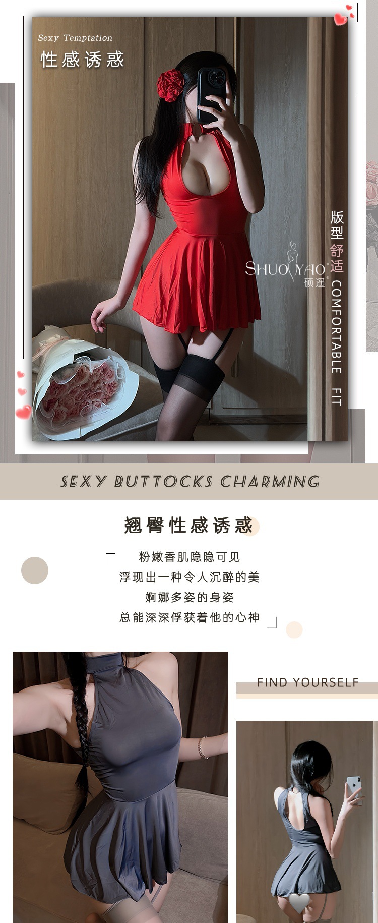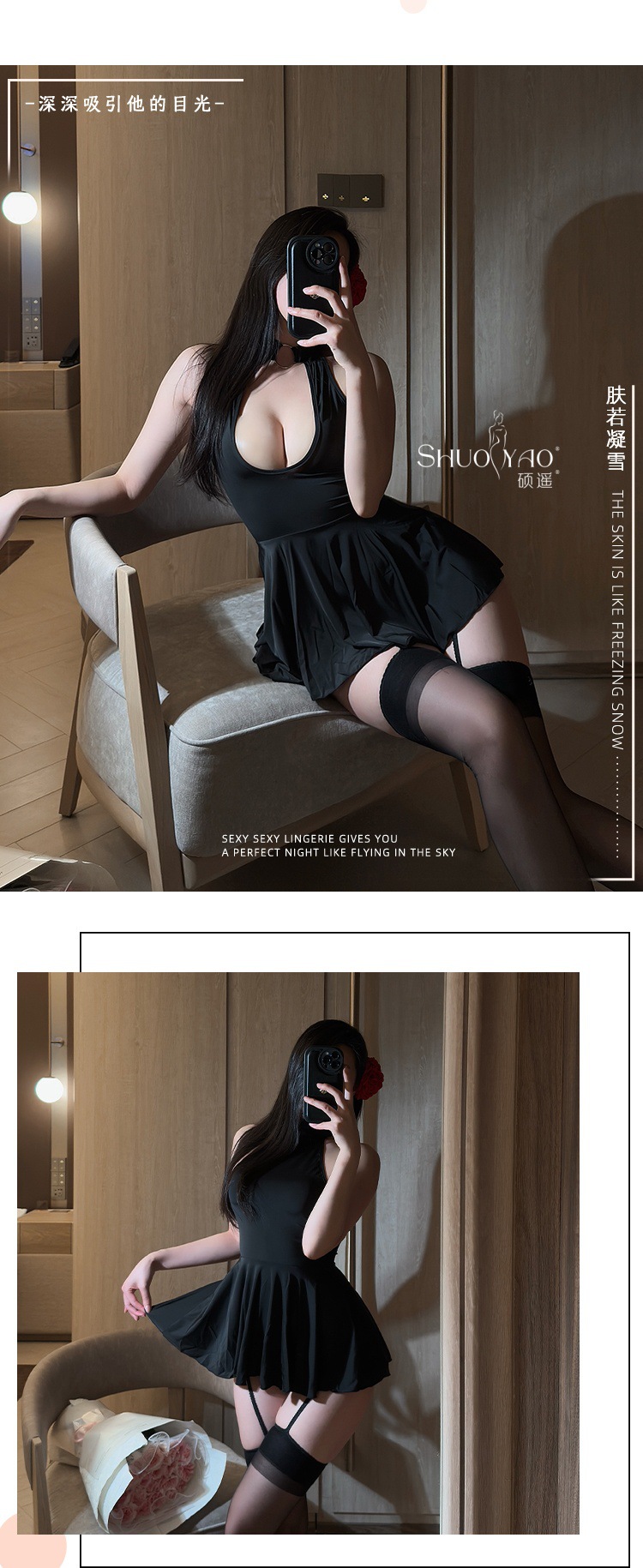 Shuo Yao 섹시한 얼음 실키 나이트 드레스 여성 열정 유혹 긍정적이고 역 착용 뜨거운 실키 성인 잠옷스토어 가기