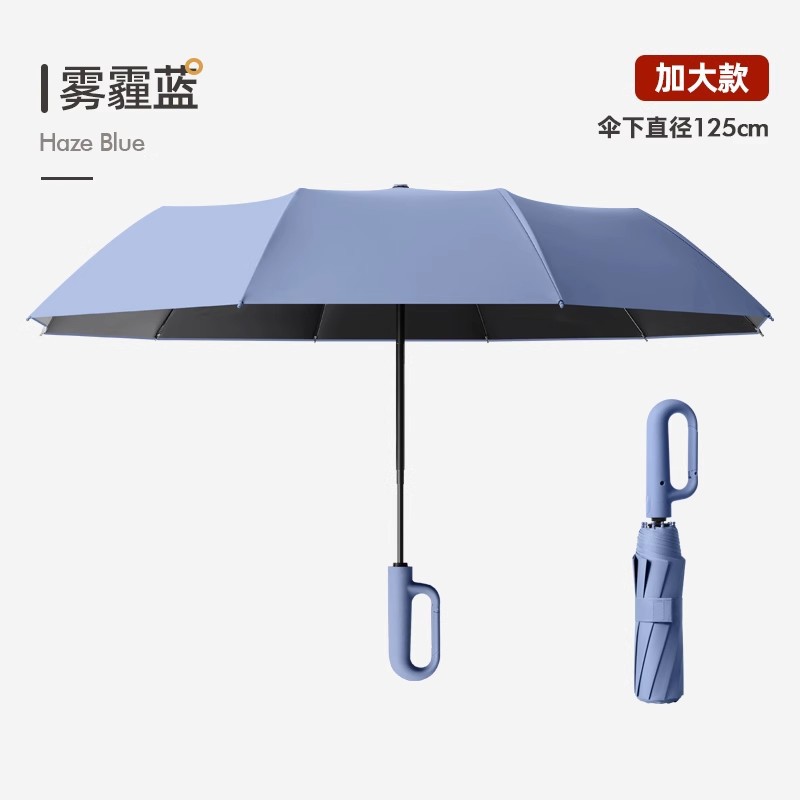 • 하늘색 숨겨진 버클 손잡이 비닐 자동 우산