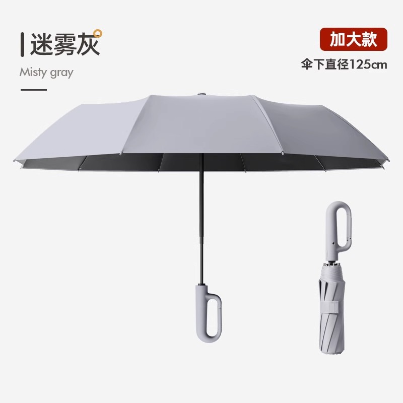 • 회색 숨겨진 버튼 손잡이 비닐 자동 우산