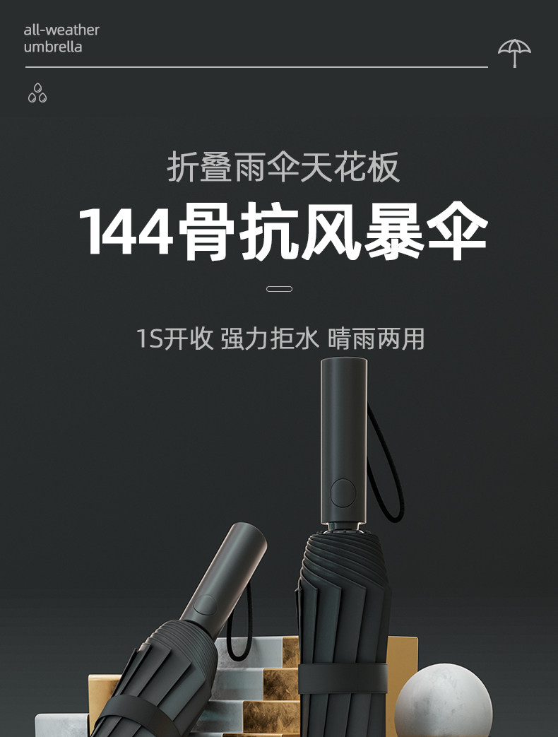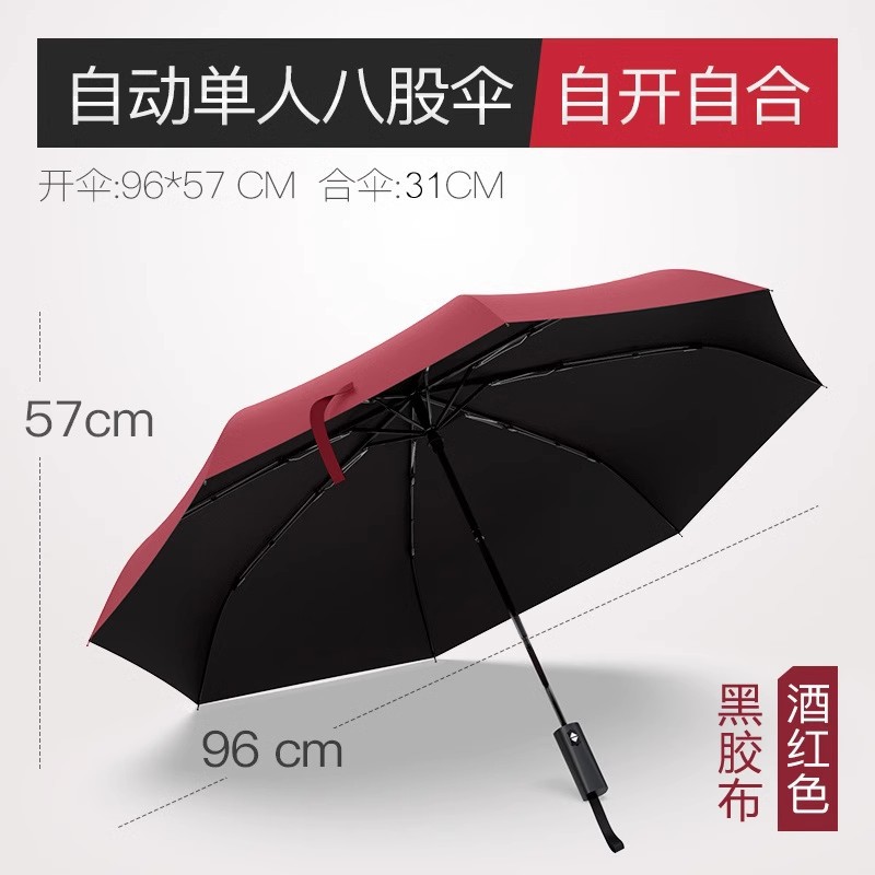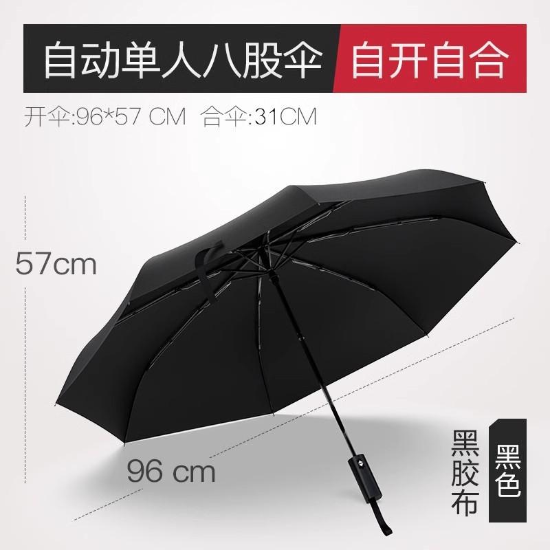 • 검은색 숨겨진 버클 손잡이 비닐 자동 우산