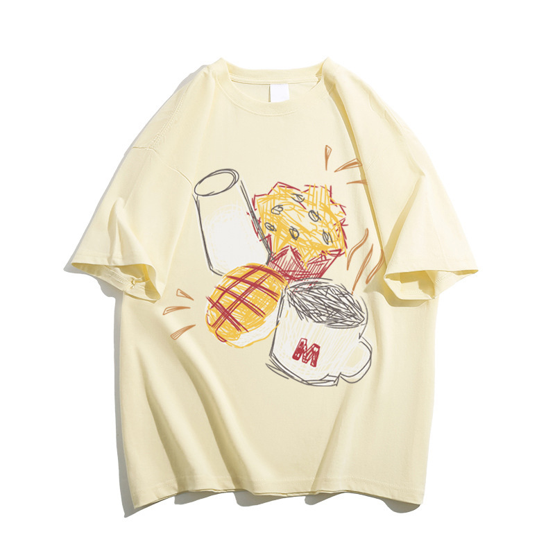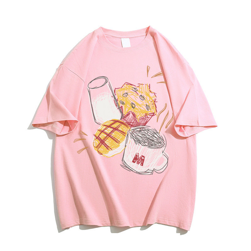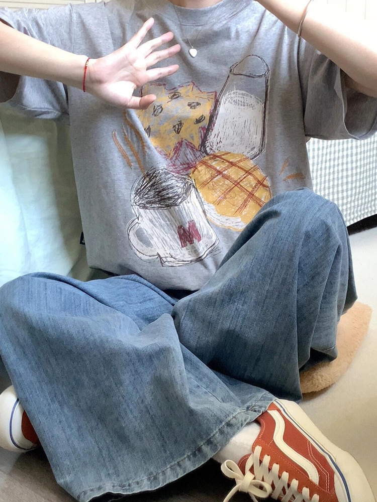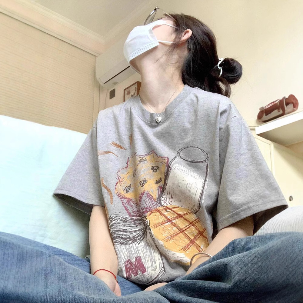 그레이 퓨어 코튼 아메리칸 스타일 레트로 숄더 반팔 티셔츠 여성 여름 디자인 센스 니쉬 트렌디 브랜드 유럽 반소매 탑스토어 가기