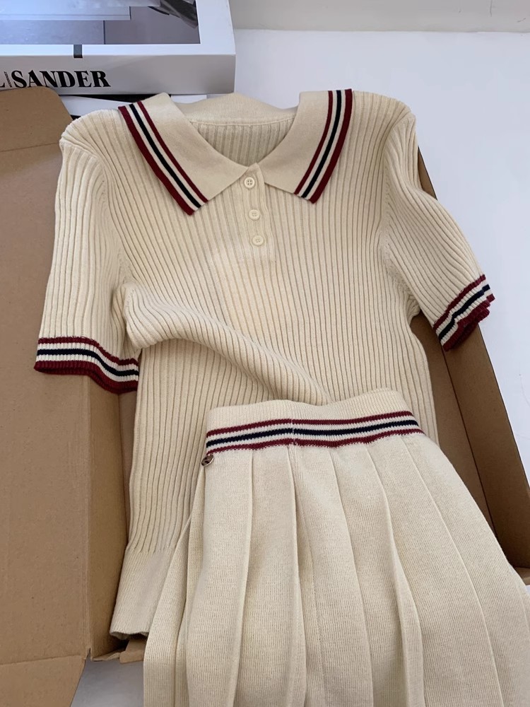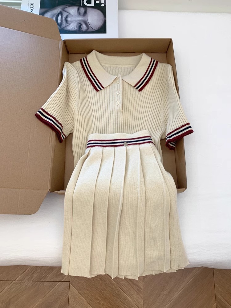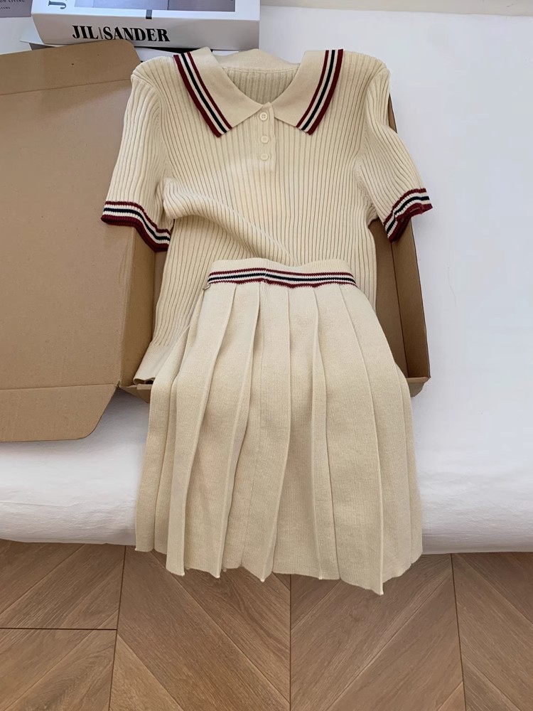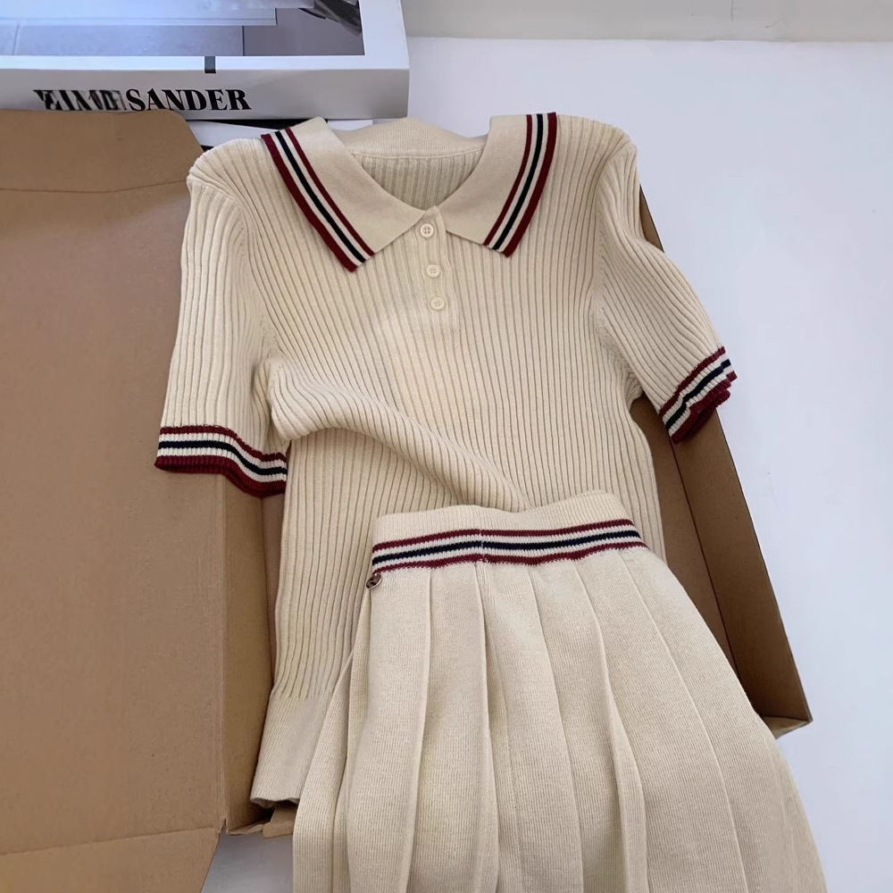 나이를 줄이는 것은 여성을위한 작은 키 큰 패션 학술 스타일 스커트 탑 투피스 세트 세트를 착용합니다.스토어 가기