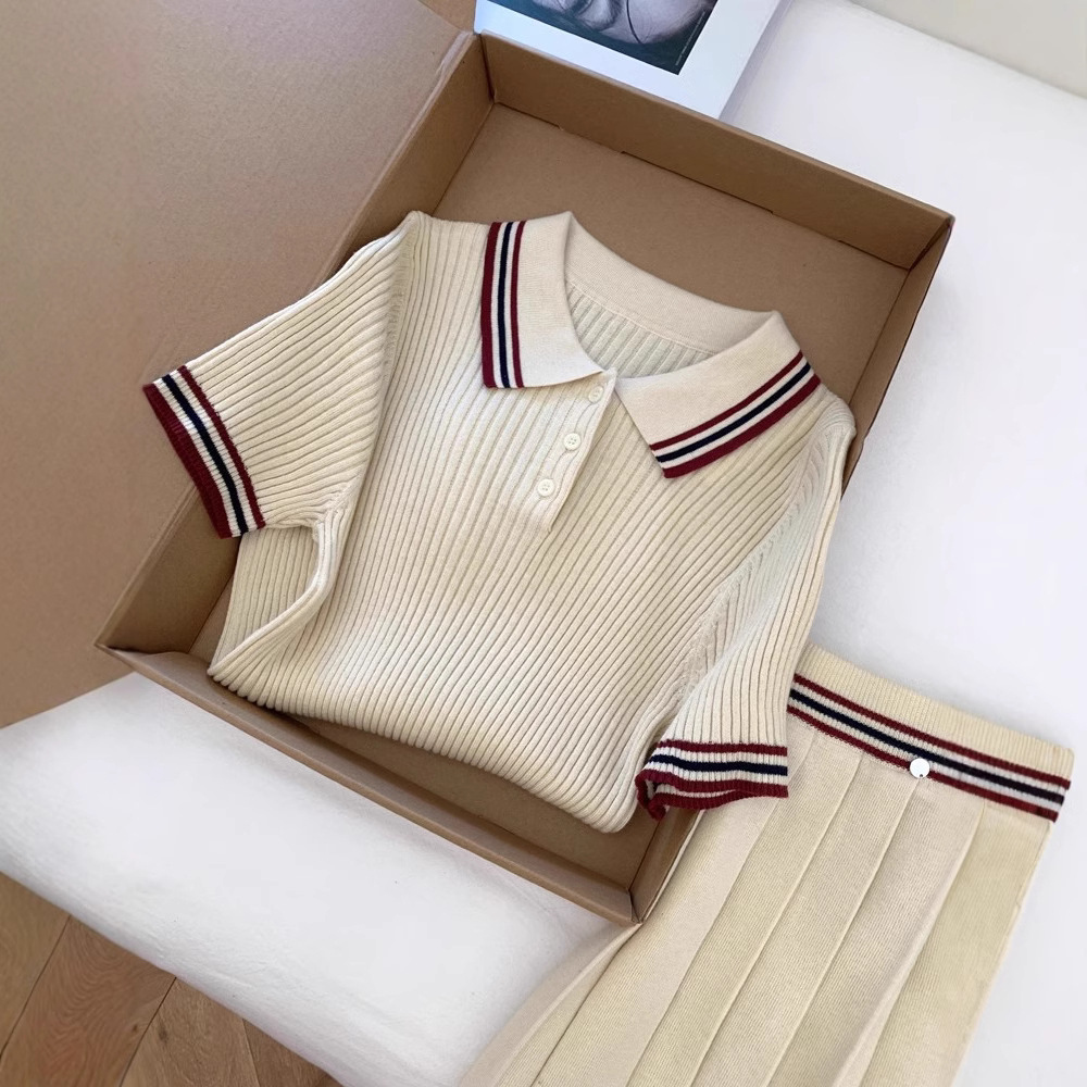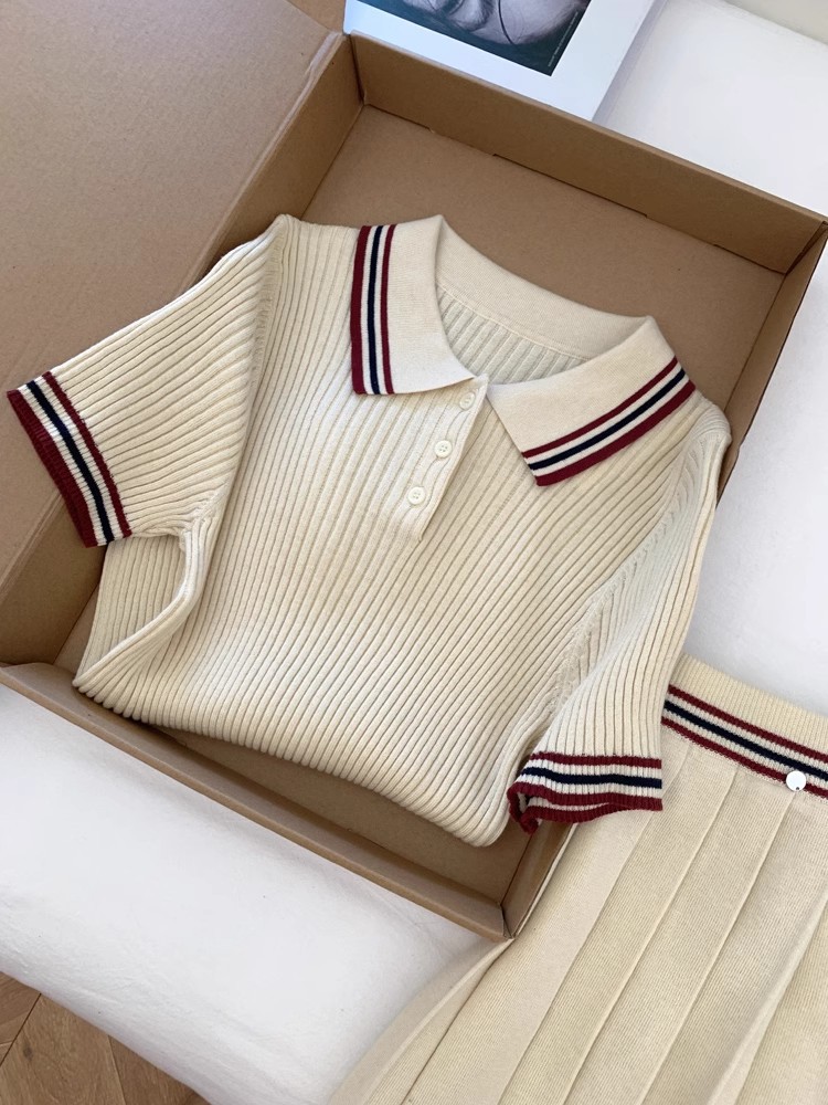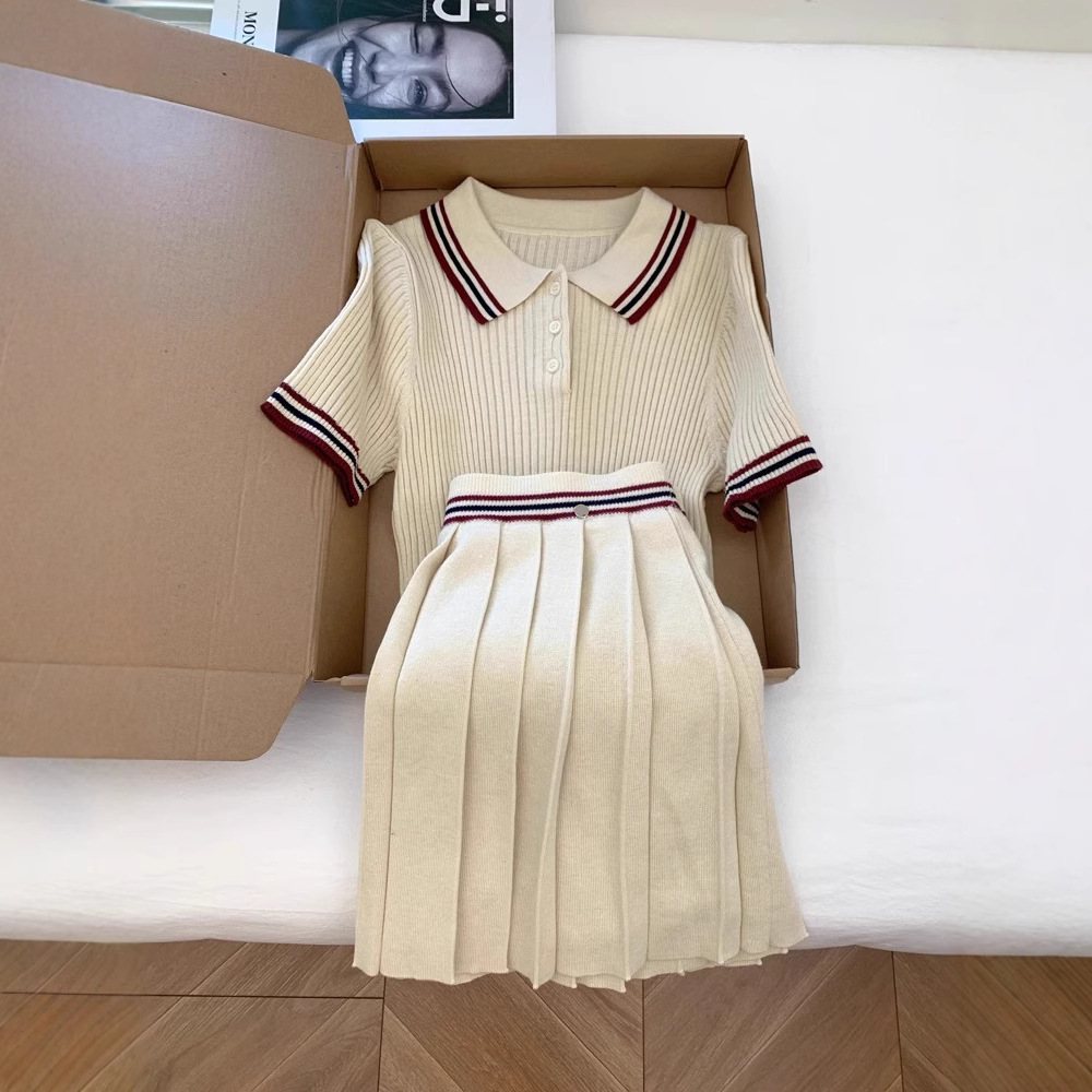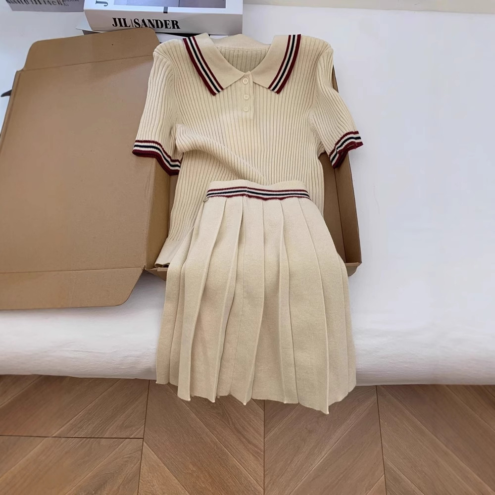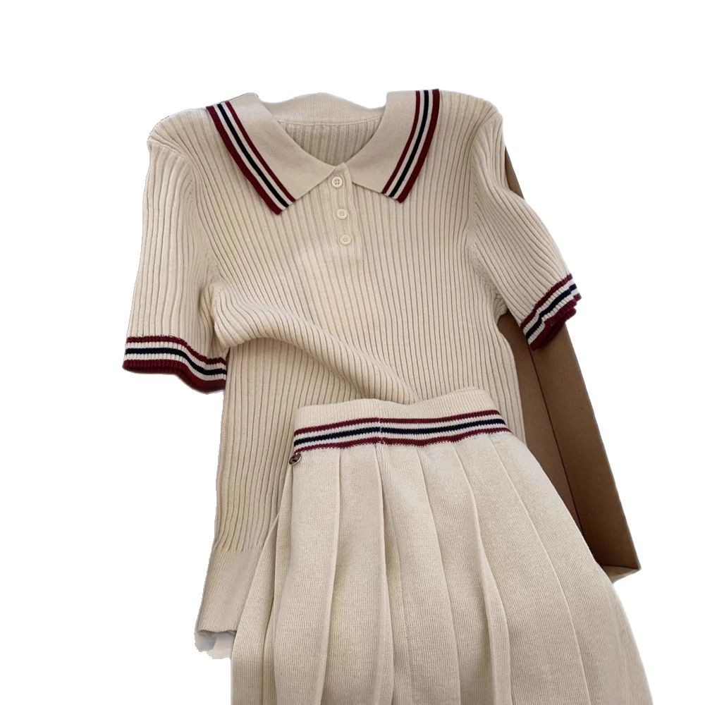 나이를 줄이는 것은 여성을위한 작은 키 큰 패션 학술 스타일 스커트 탑 투피스 세트 세트를 착용합니다.