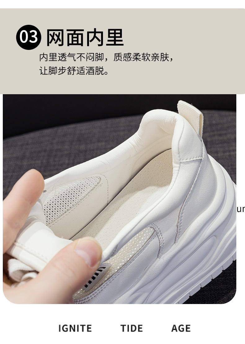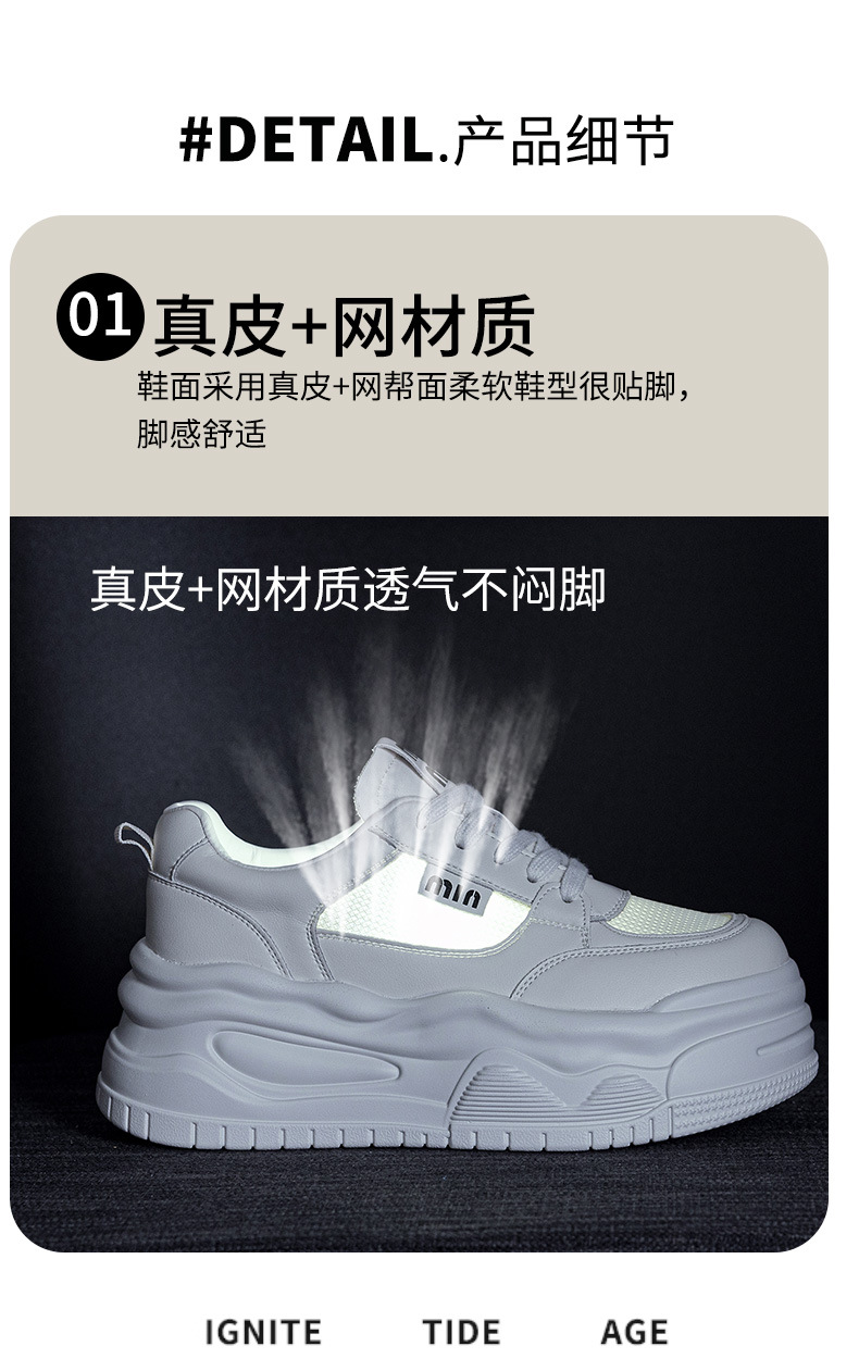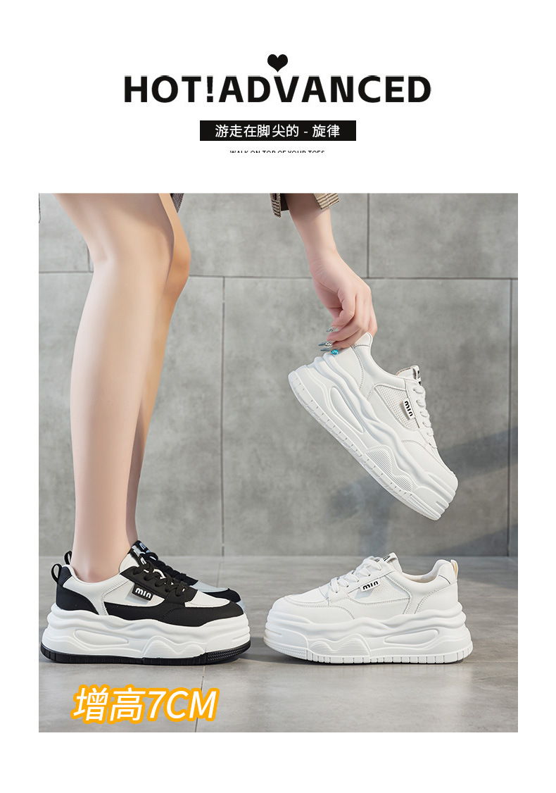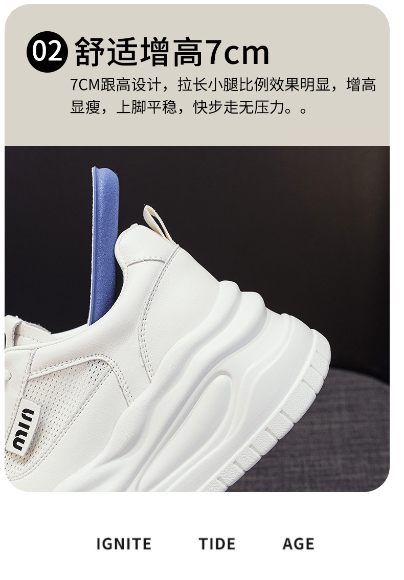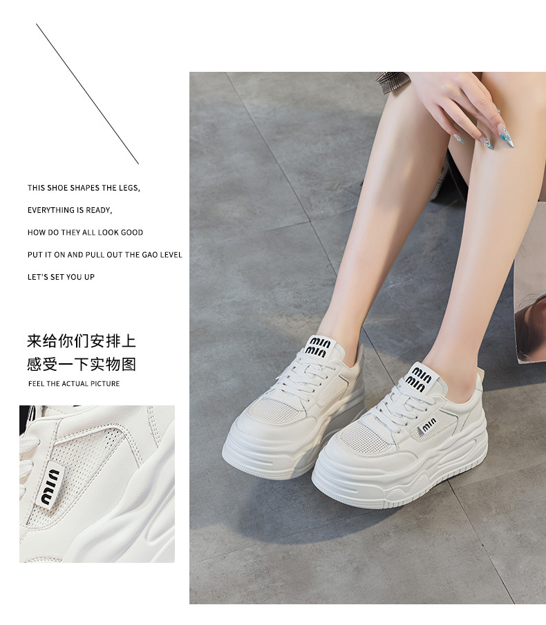 7cm 정품 가죽 메쉬 통기성 화이트 신발 여름 새로운 두꺼운 단독 상승 보드 신발 경량 캐주얼 운동화스토어 가기