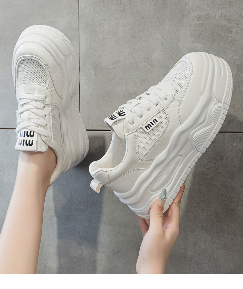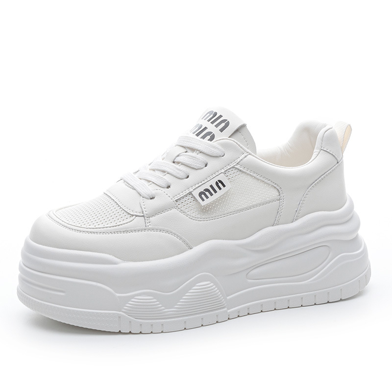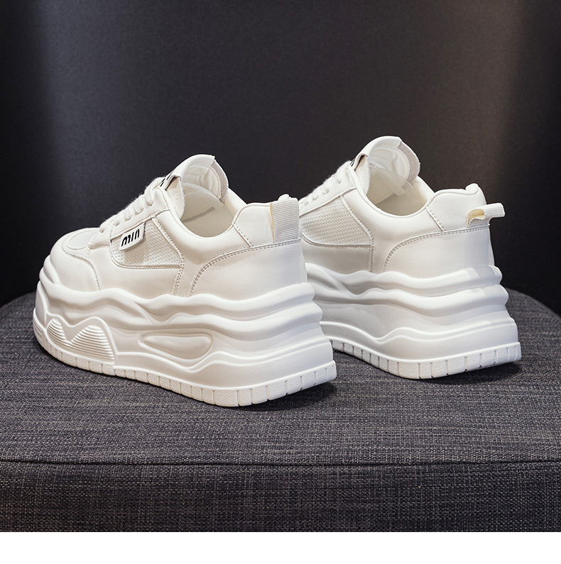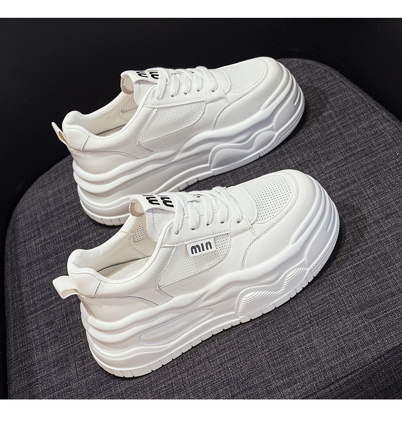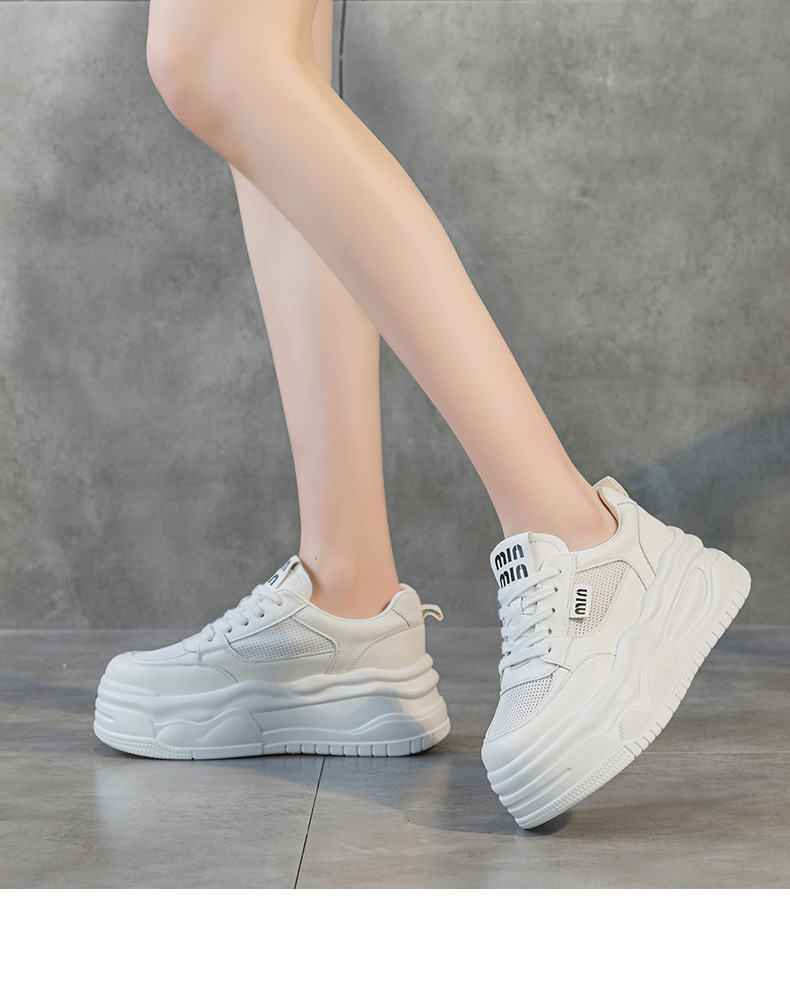 7cm 정품 가죽 메쉬 통기성 화이트 신발 여름 새로운 두꺼운 단독 상승 보드 신발 경량 캐주얼 운동화