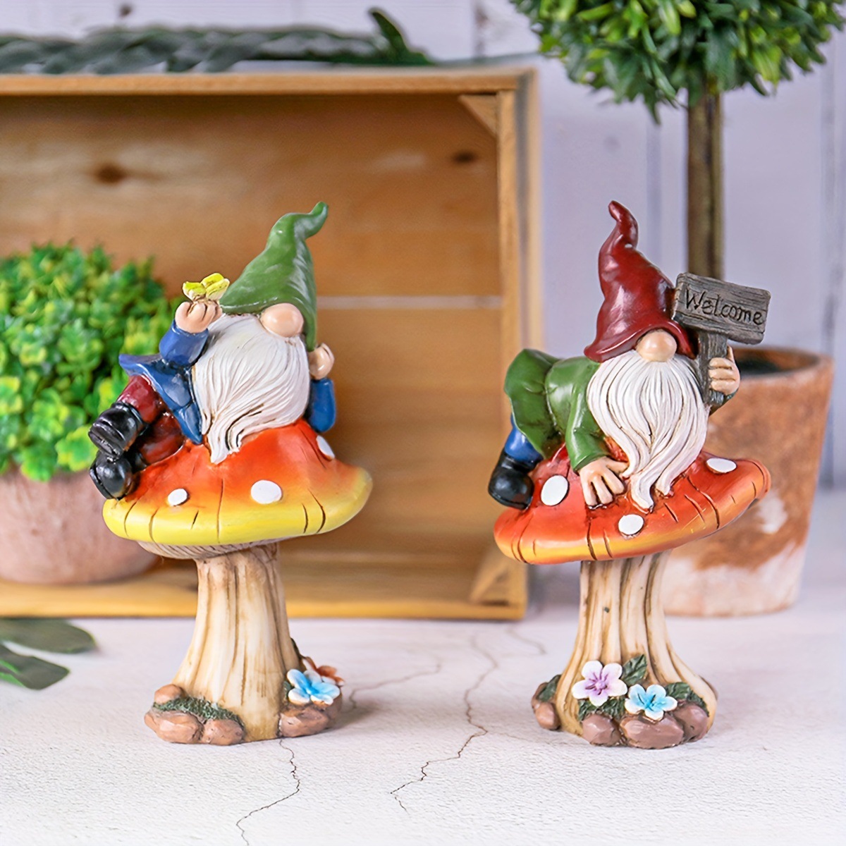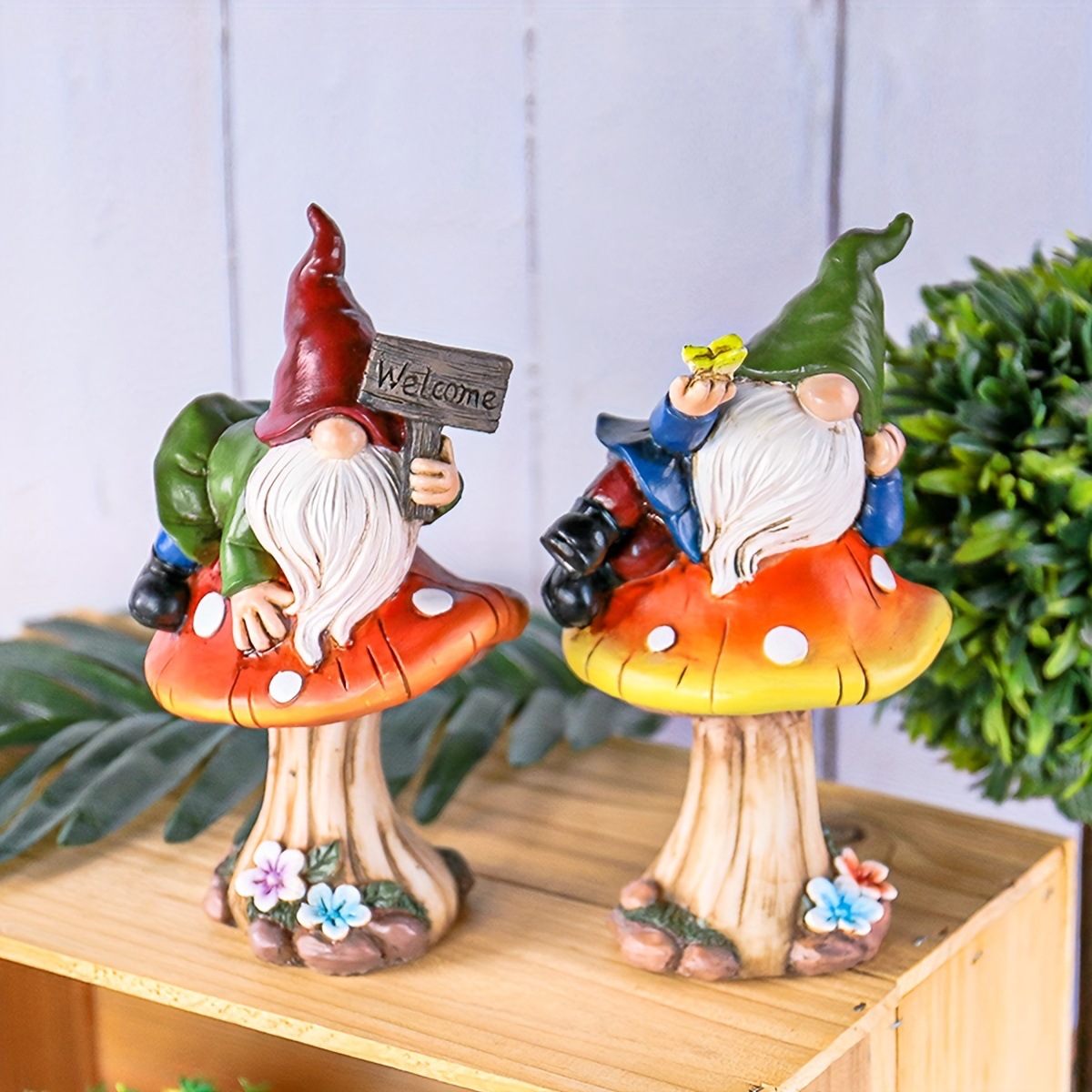 국경 간 환영 버섯 엘프 정원 장식품 수지 화이트 수염 드워프 그놈 동상 정원 장식품스토어 가기