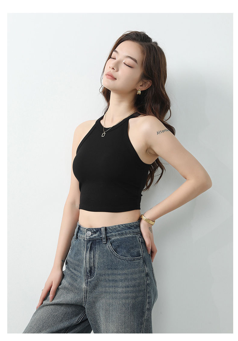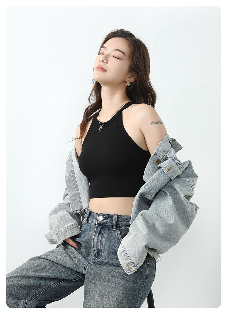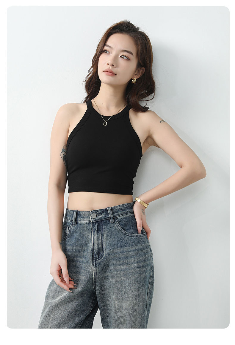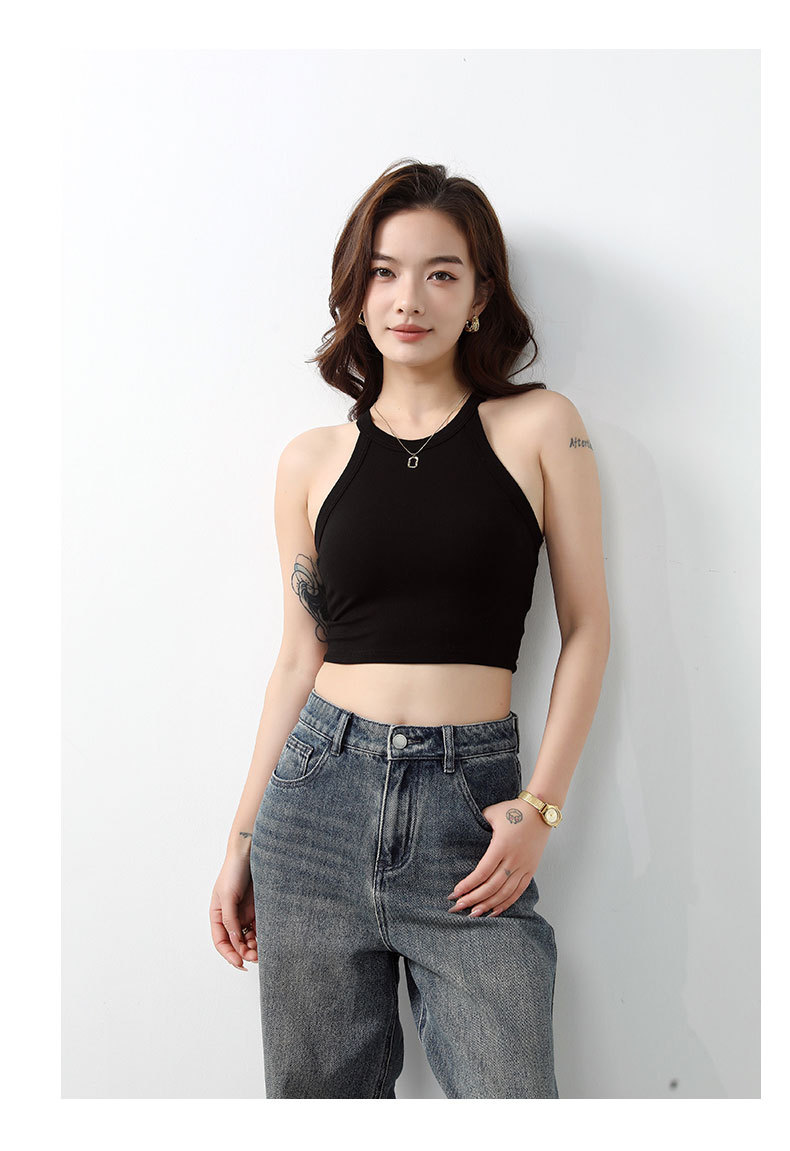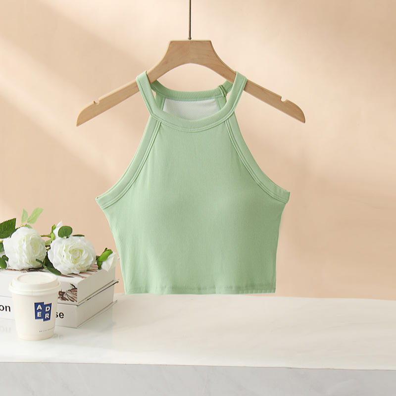 도파민 Halter Camisole 여성 여름 2025 새로운 스타일 아름다운 스트랩 가슴 패드 뜨거운 소녀 슬림베이스 민소매 탑스토어 가기