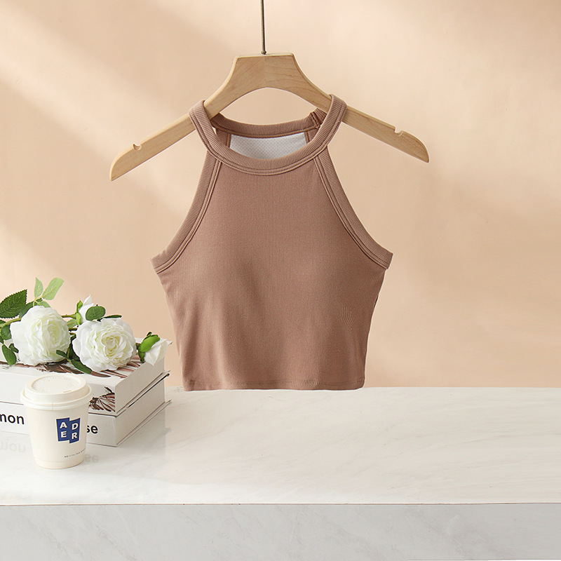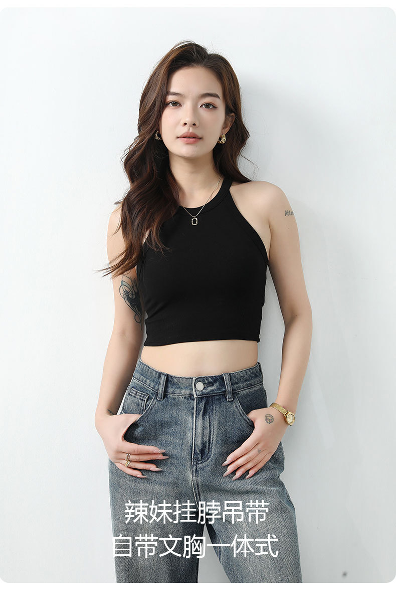 도파민 Halter Camisole 여성 여름 2025 새로운 스타일 아름다운 스트랩 가슴 패드 뜨거운 소녀 슬림베이스 민소매 탑