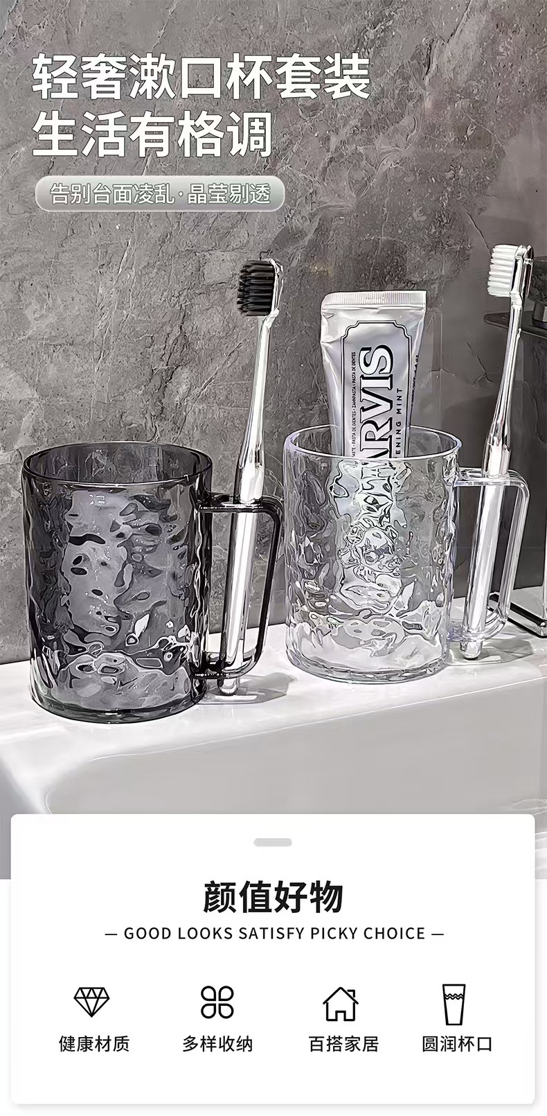 빙하 패턴 마우스 워시 컵 투명 칫솔 컵 치약 컵 칫솔 컵 다기능 빛 고급 가정용 물 골판지 세척 컵