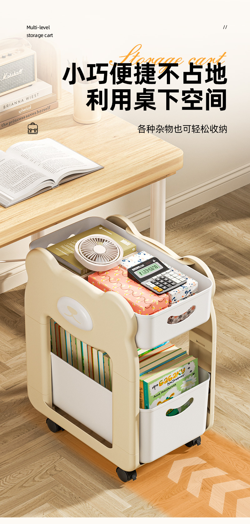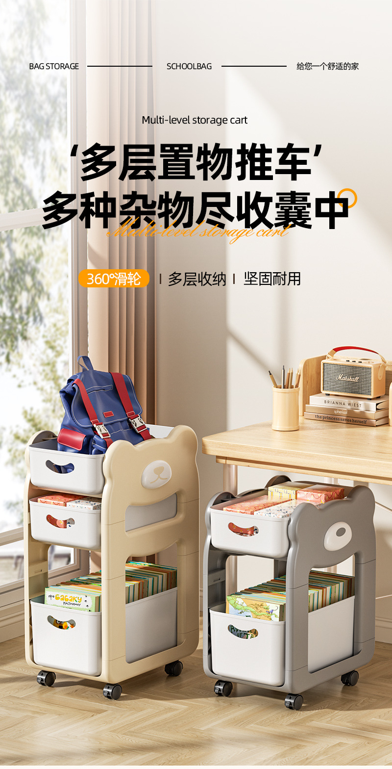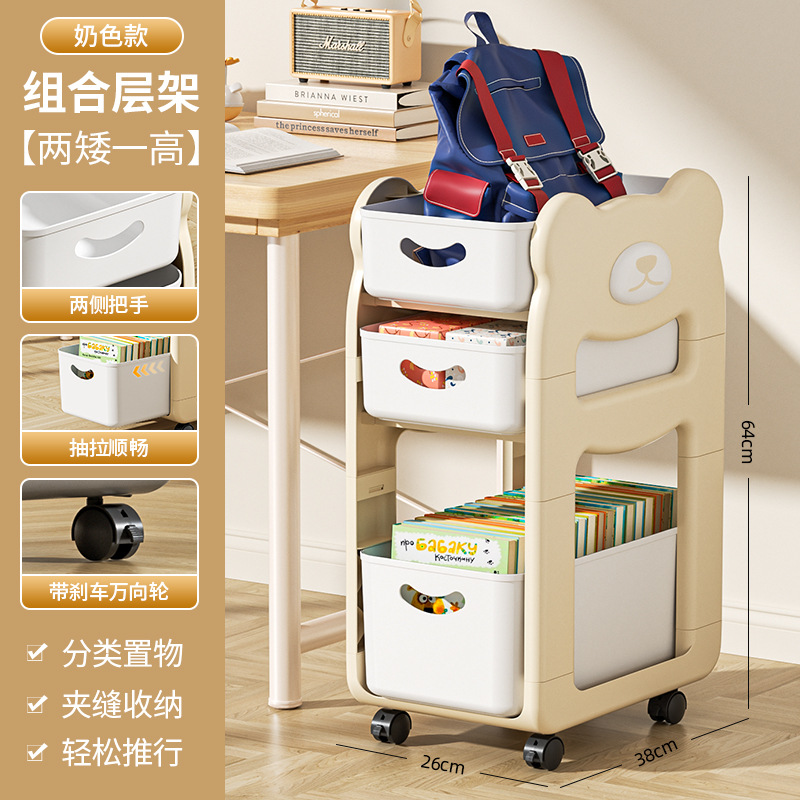 학교 가방 스낵 스토리지 랙 테이블 북 스토리지 랙 학생 홈 기숙사 데스크탑 책장 아래 움직일 수있는 카트스토어 가기