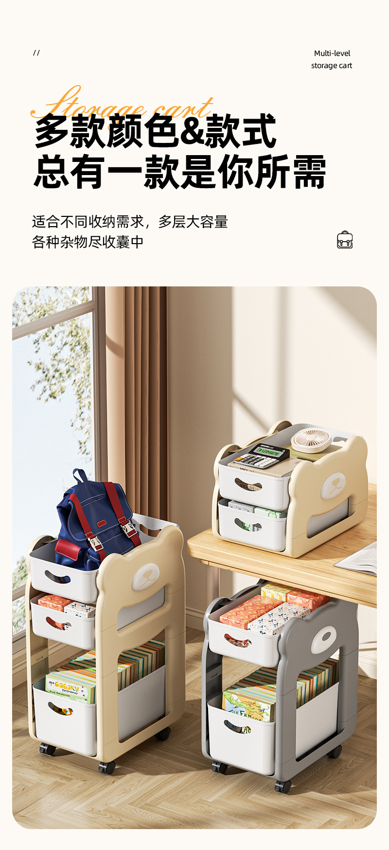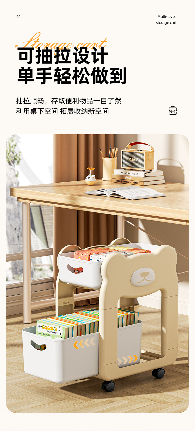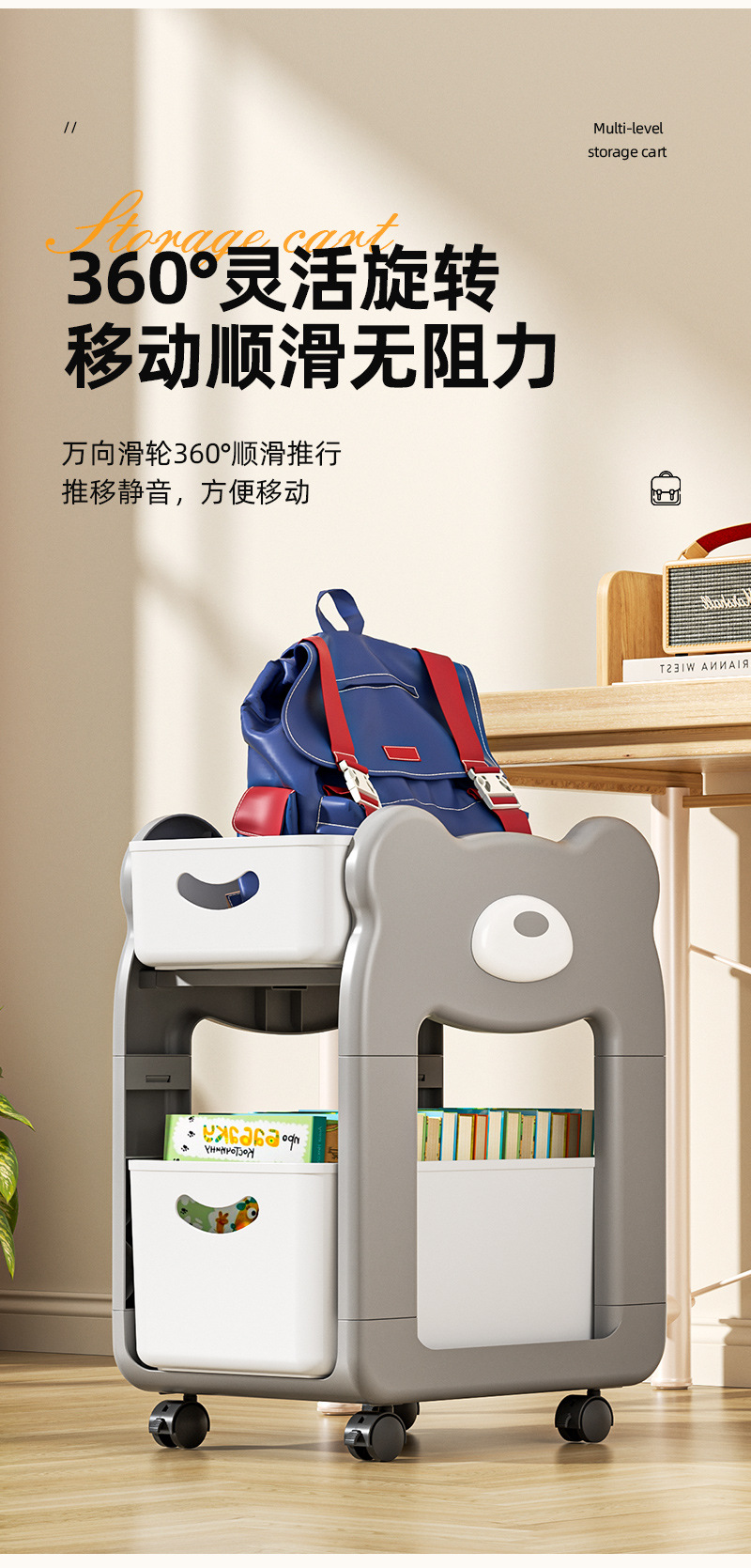 학교 가방 스낵 스토리지 랙 테이블 북 스토리지 랙 학생 홈 기숙사 데스크탑 책장 아래 움직일 수있는 카트스토어 가기