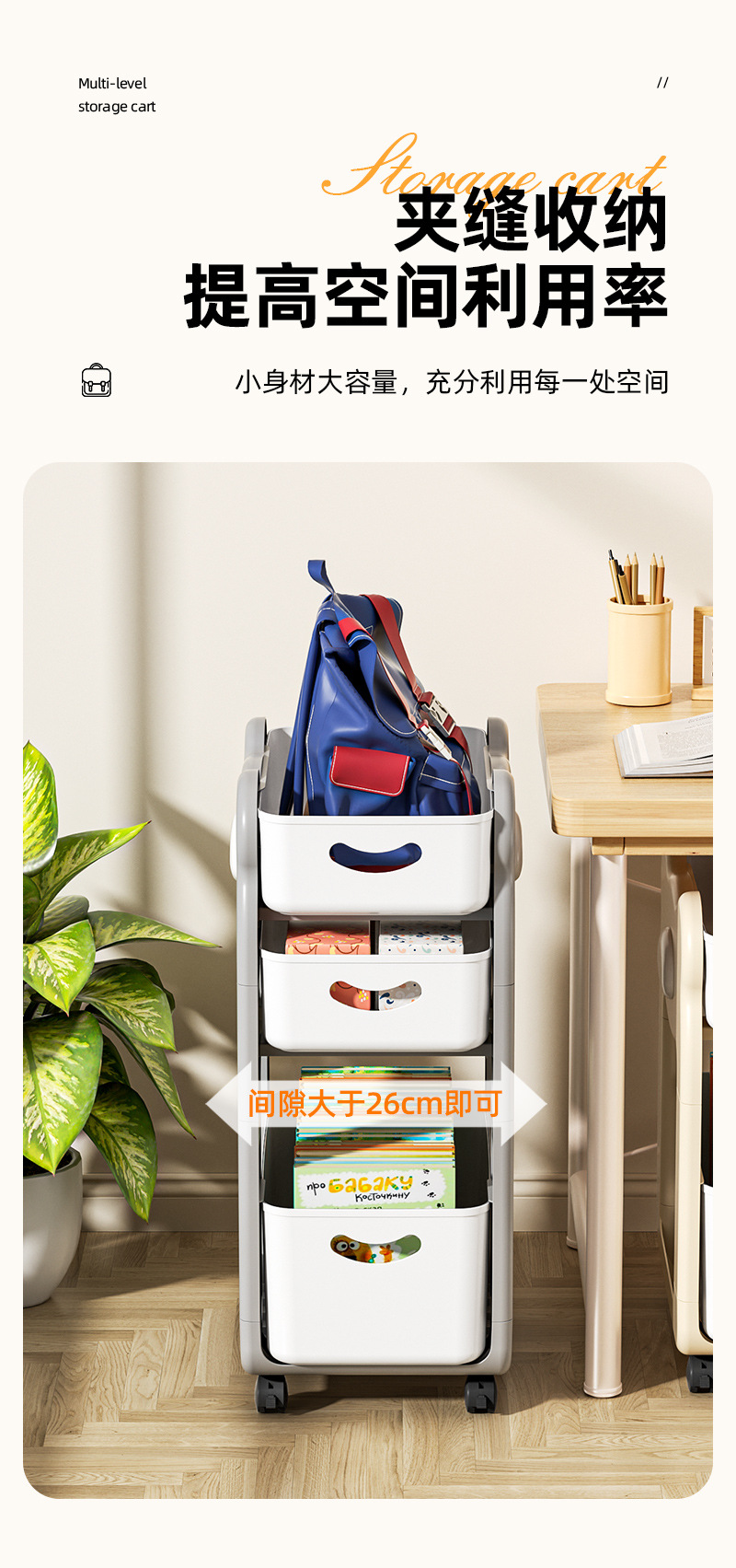 학교 가방 스낵 스토리지 랙 테이블 북 스토리지 랙 학생 홈 기숙사 데스크탑 책장 아래 움직일 수있는 카트