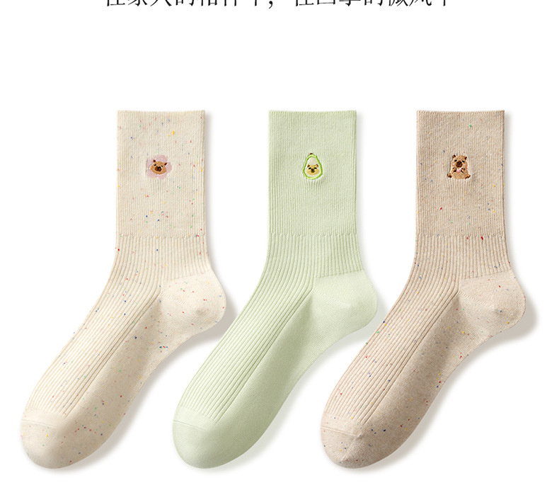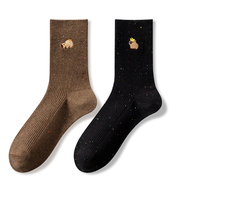 • 도트 얀 강아지 자수 스트라이프 종아리 중간 여성 양말