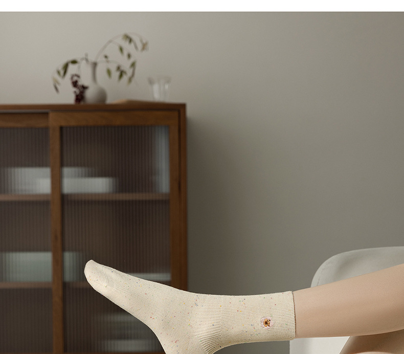 • 도트 얀 카피발라 자수 스트라이프 종아리 중간 여성 양말